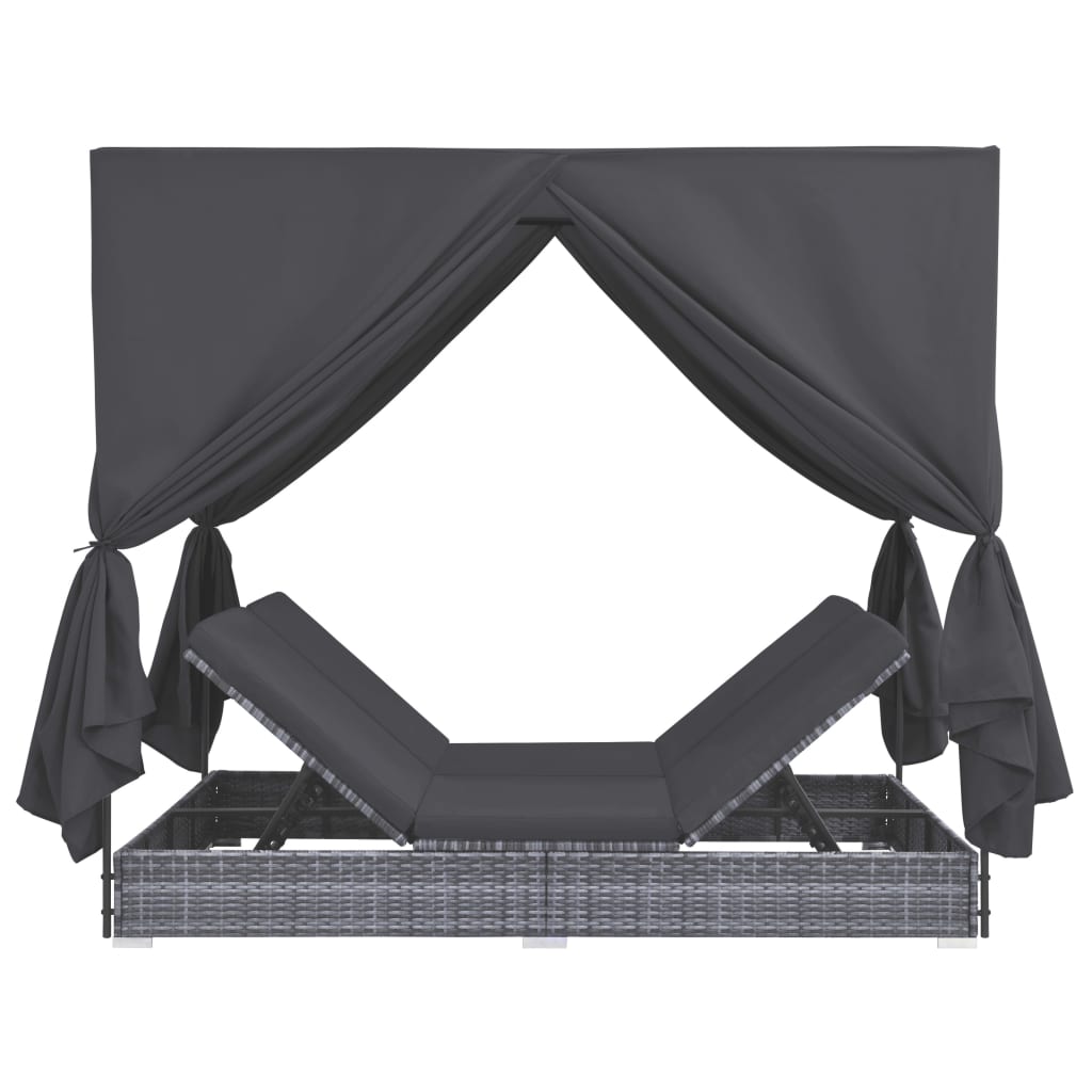 vidaXL Záhradné ležadlo so závesmi polyratanové sivé
