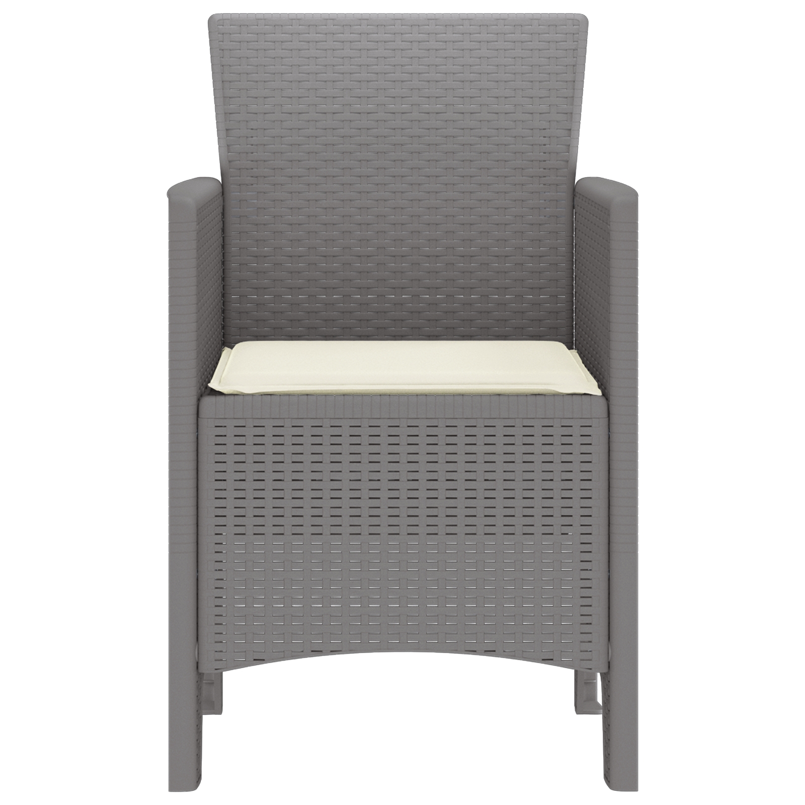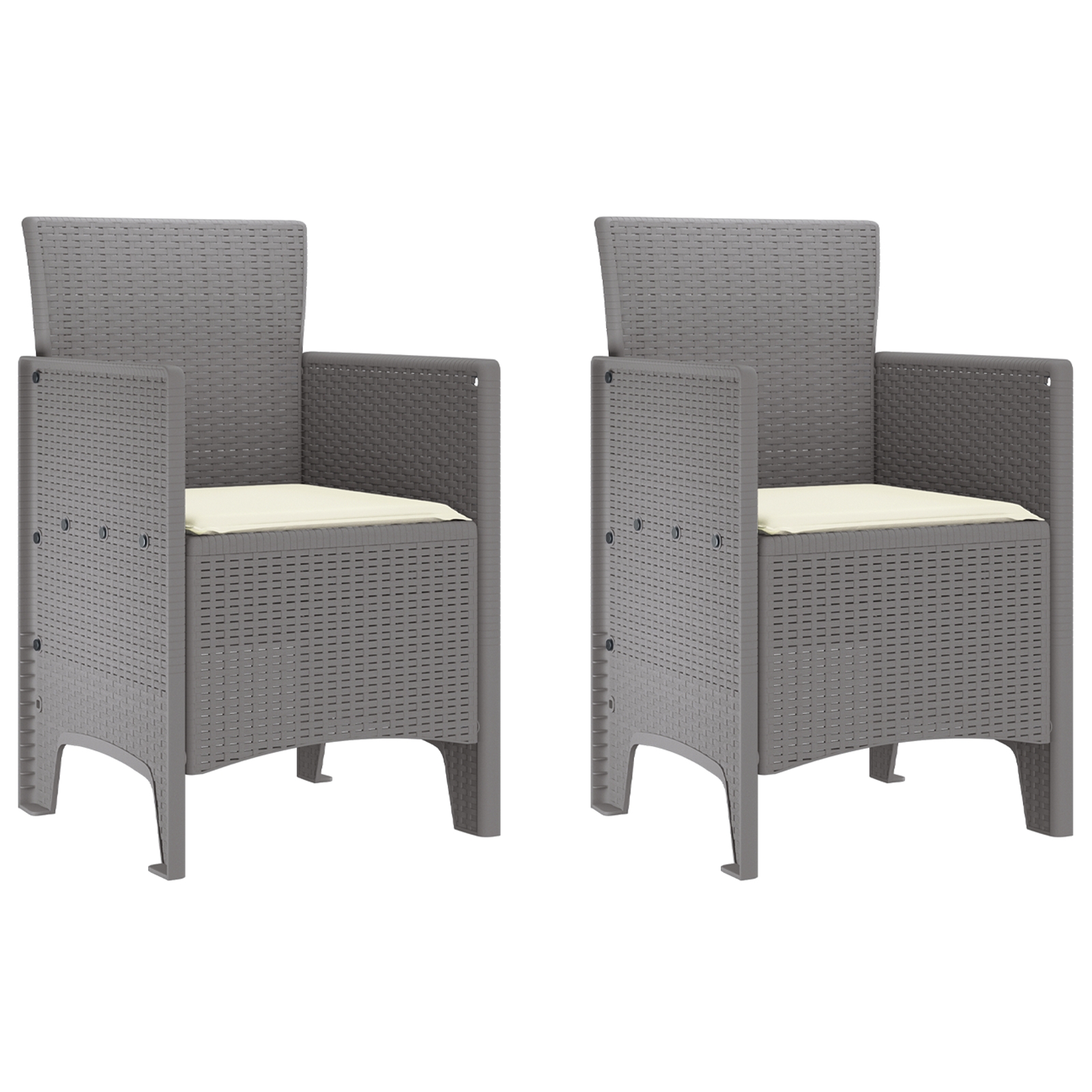 Tento set záhradných stoličiek s poduškami spája štýl a funkčnosť, super na vonkajšie akcie s rodinou a priateľmi. Robí sa z pevných umelých materiálov v svetlosivej farbe a má krémové podušky, vďaka čomu je ideálny na tvoj balkón, patio alebo do záhrady.