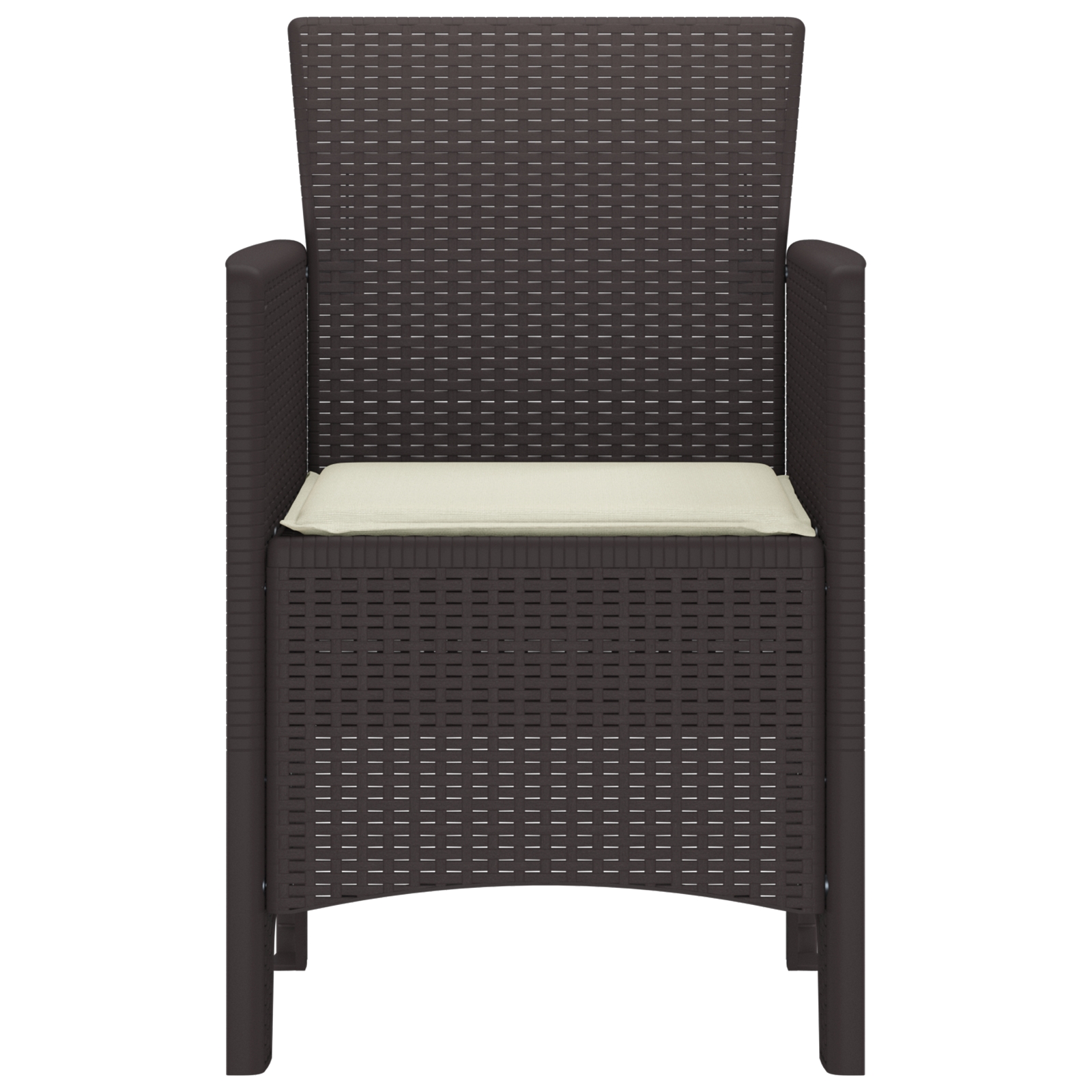 Táto súprava záhradných stoličiek s vankúšmi skvele kombinuje funkciu so štýlom, ideálna na jedlo aj relax. Vyrobené z odolného syntetického ratanu, tieto nádherné hnedé stoličky sú vybavené pohodlnými vankúšmi, vytvárajúcimi vítajúcu atmosféru na každé patio, balkón alebo záhradný priestor.