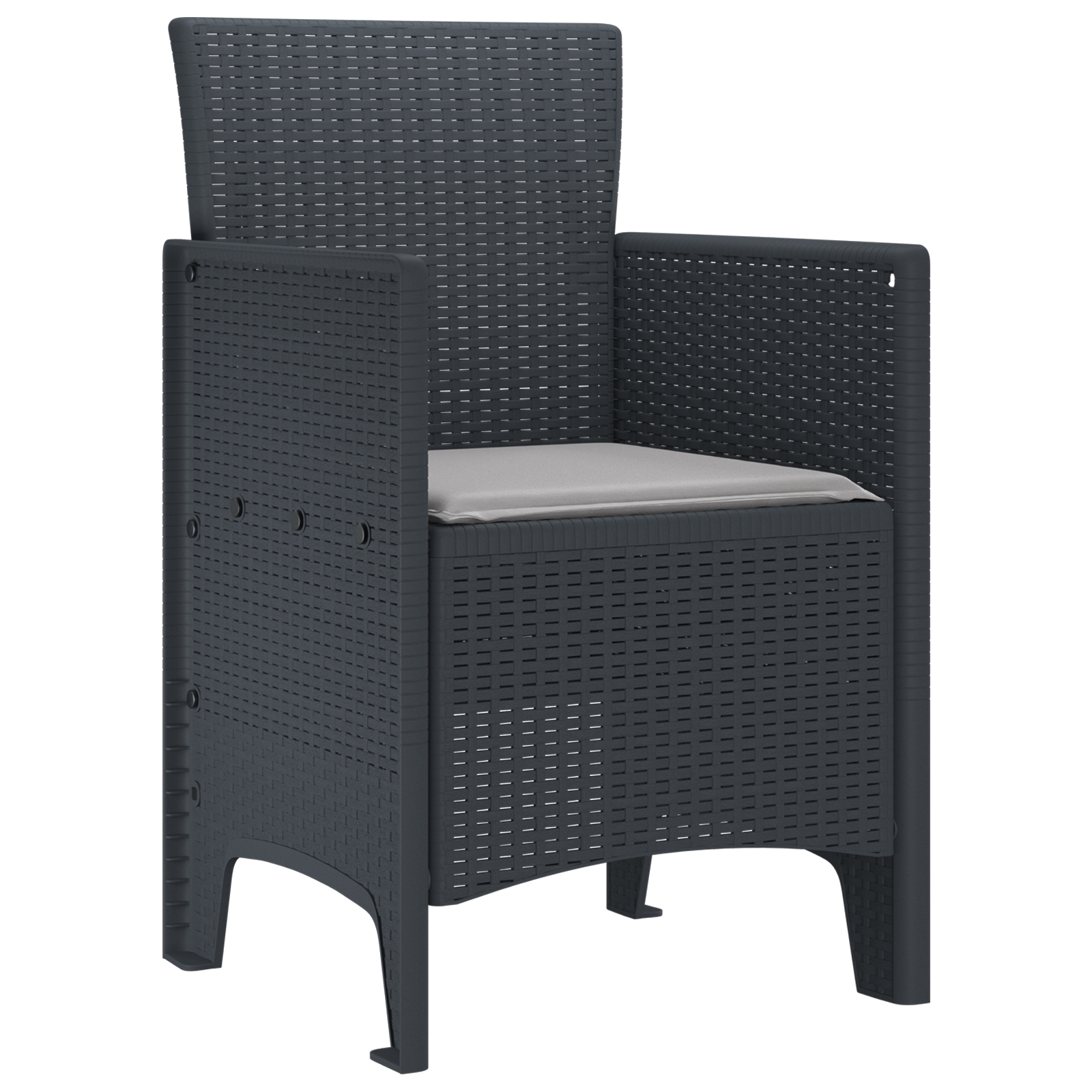 vidaXL Záhradné stoličky s vankúšmi 4 ks antracitový poly ratan