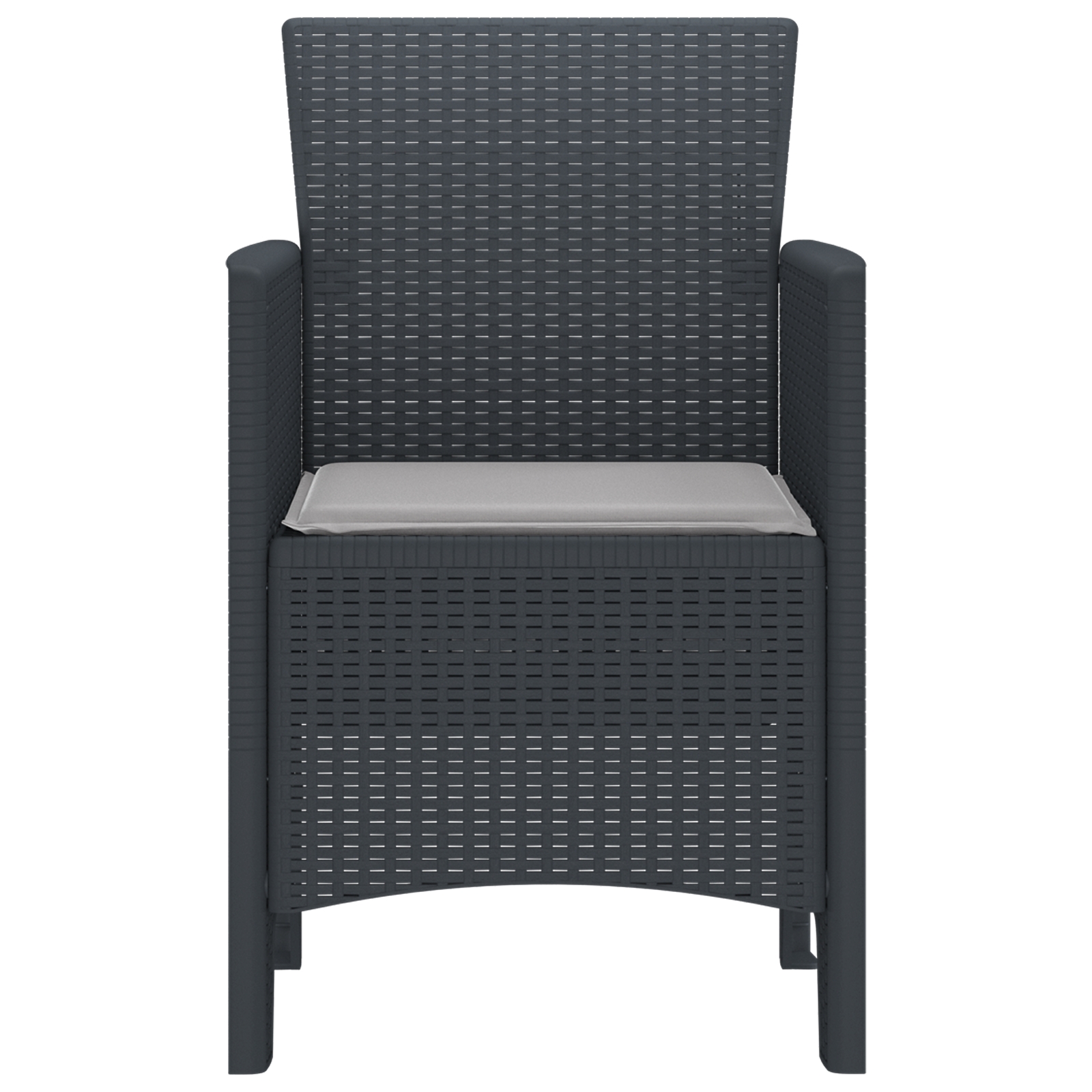 Táto sada záhradných stoličiek s vankúšmi ponúka štýl a pohodlie, ideálne na vonkajšie posedenia s rodinou a priateľmi. Vyrobené z pevného materiálu, tieto efektné antracitové stoličky prinášajú moderný pocit do každého balkóna, terasy či záhrady.