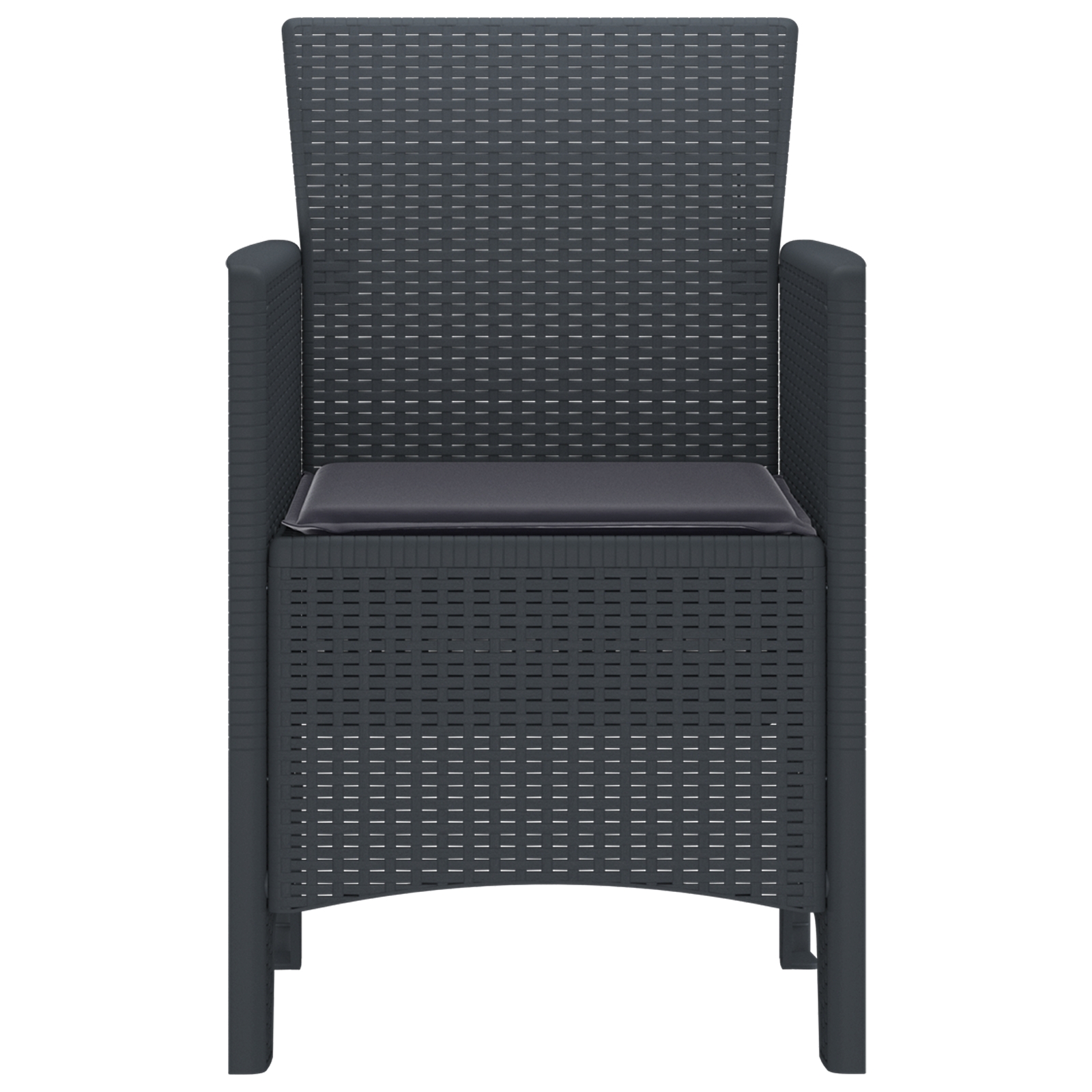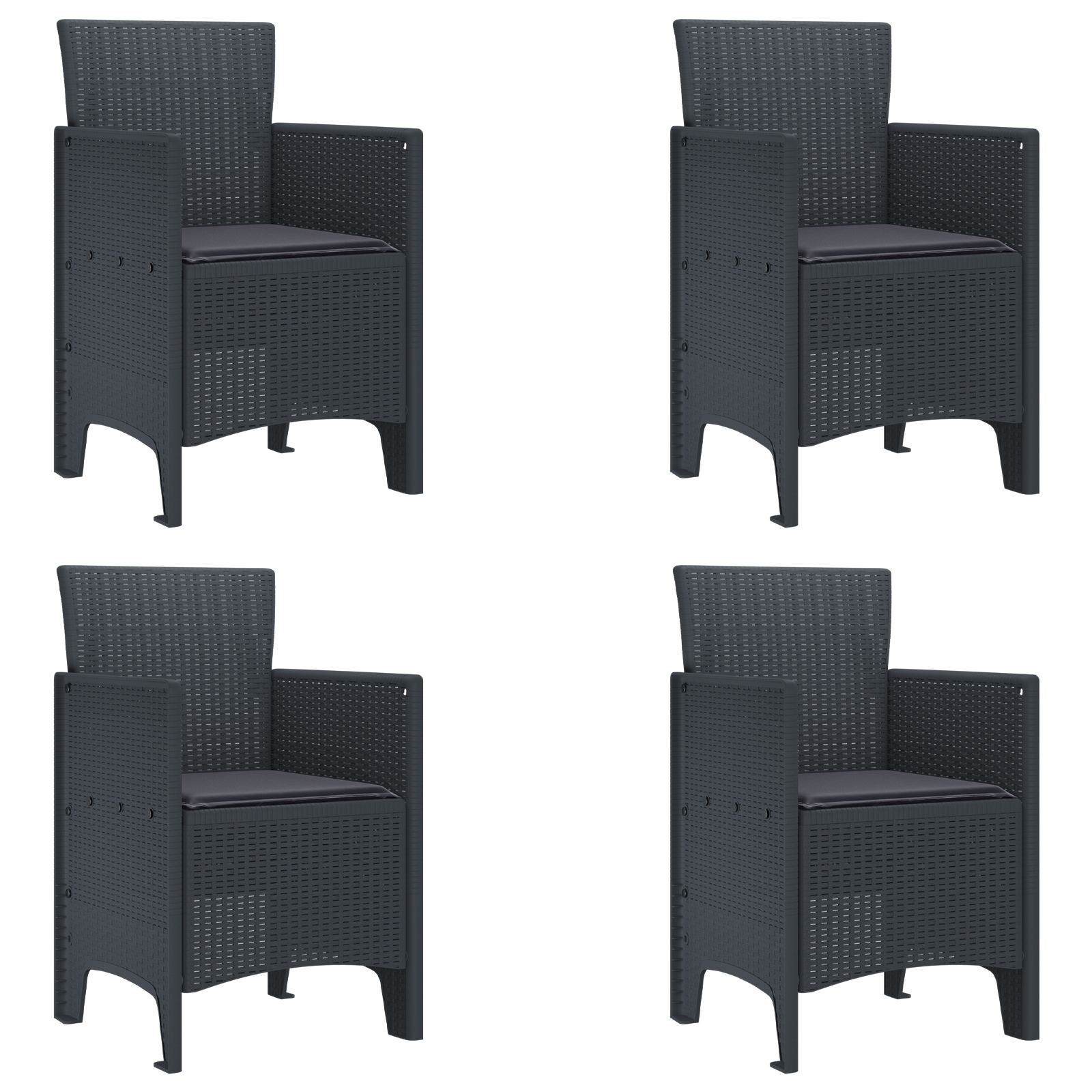 vidaXL Záhradné stoličky s vankúšmi 4 ks Antracitový Poly Ratan