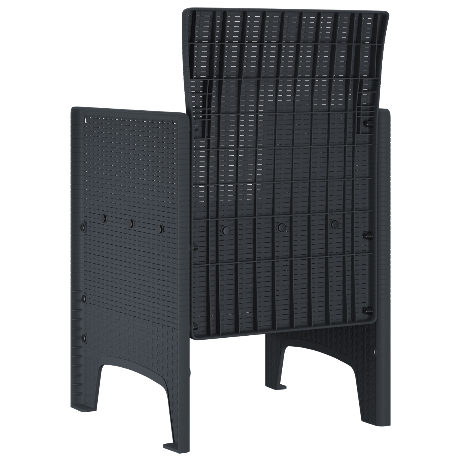 Táto sada štyroch záhradných stoličiek kombinuje štýl a pohodlie, takže je ideálna na posedenie s priateľmi alebo na oddych v prírode. Vyrobené z pevného syntetického poly ratanu v modernej antracitovej farbe, skvele oživia akékoľvek vonkajšie miesto.