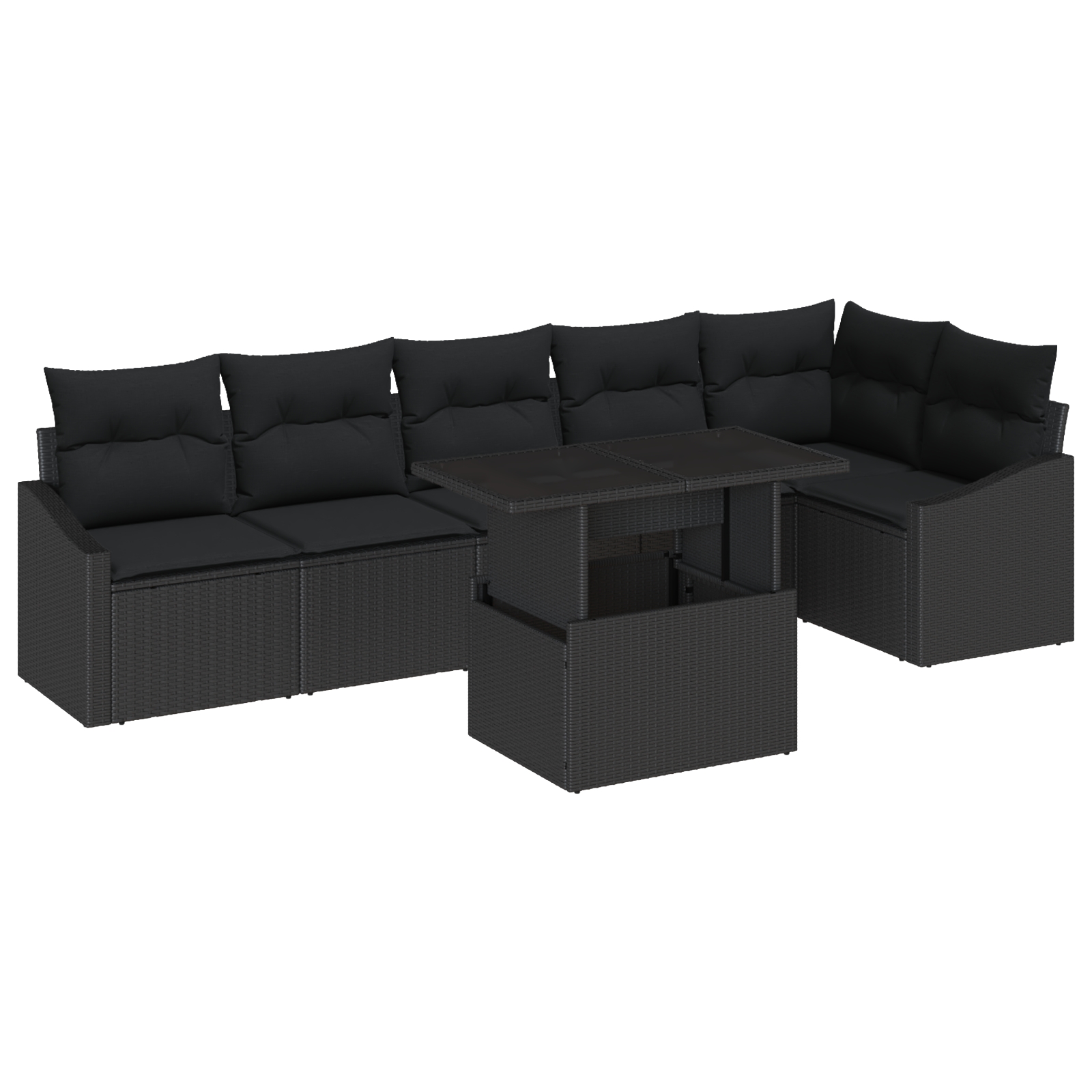 vidaXL Záhradný gauč Set 7 kusov Čierny Poly ratan Záhradný gauč