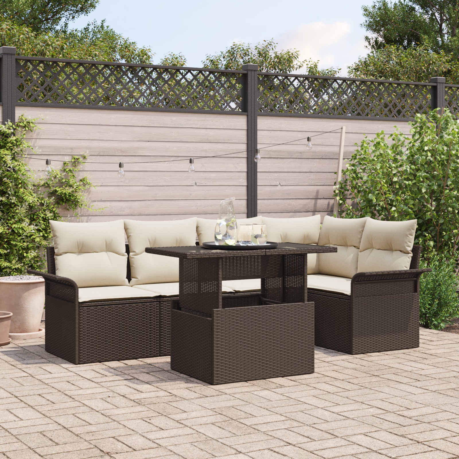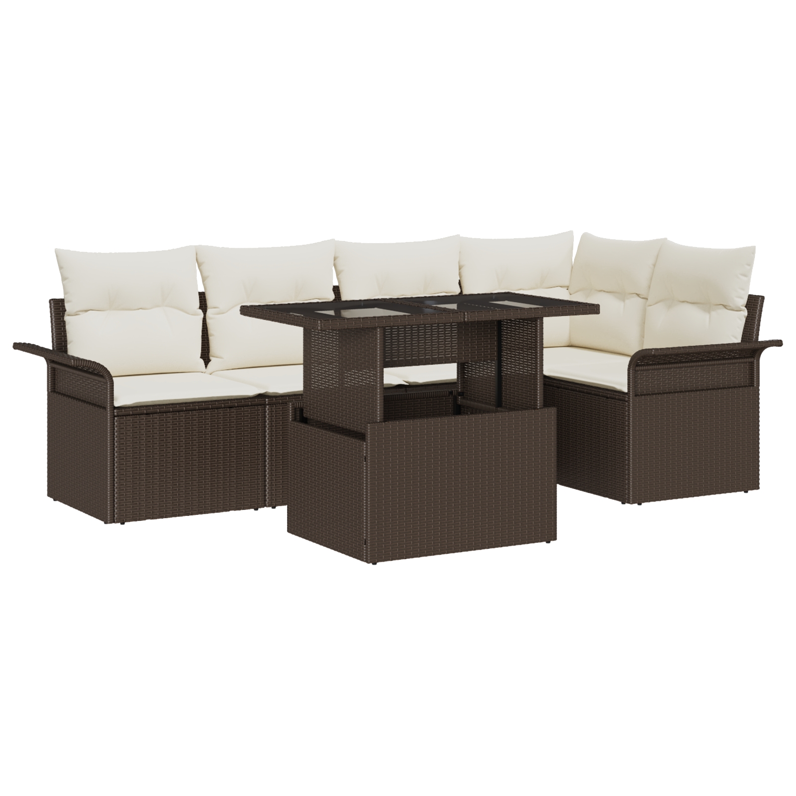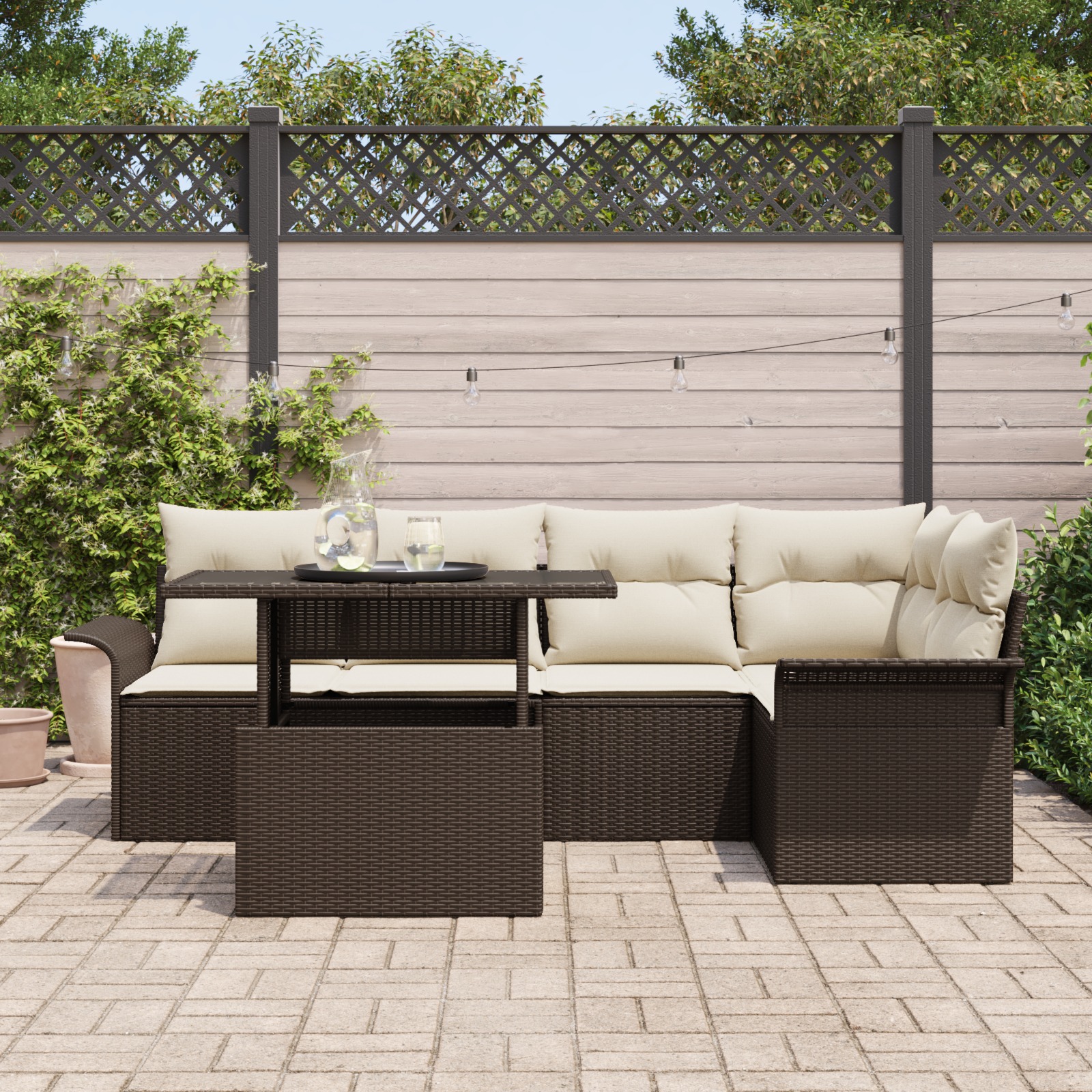 vidaXL Záhradný gaučový set 6-dielny Hnedý a krémový Ratan, Polyester