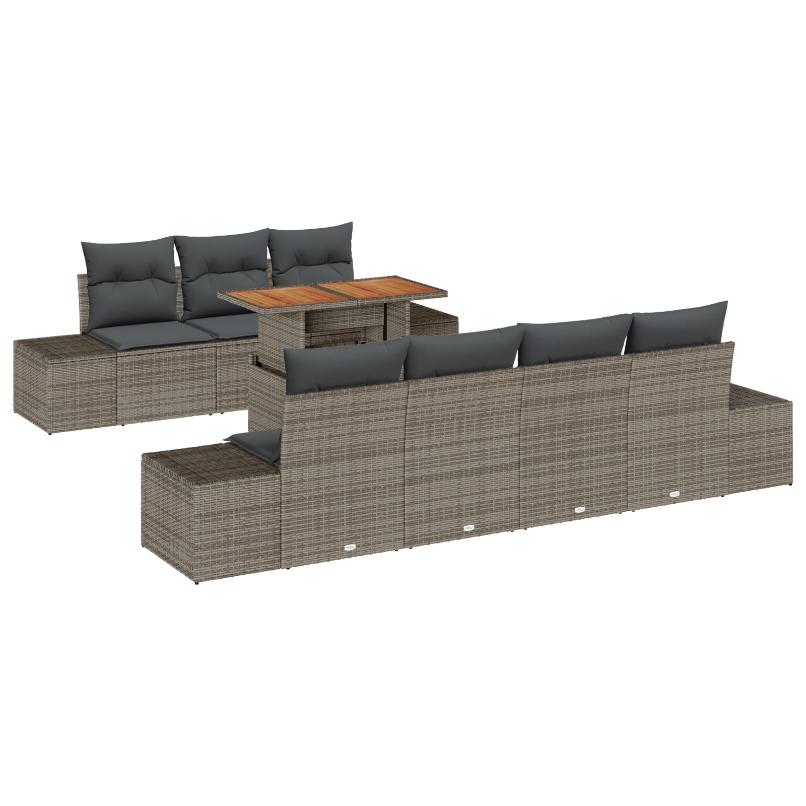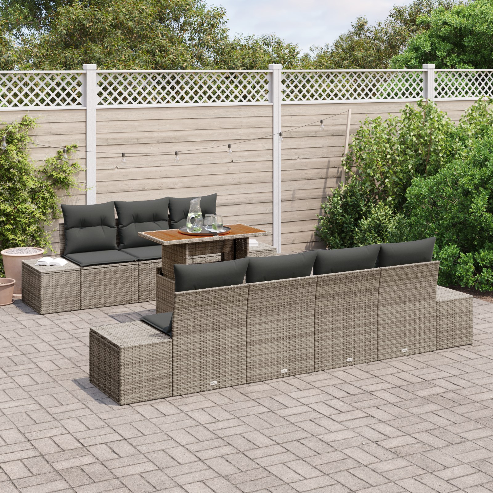 Tento 8-dielny záhradný jedálenský set je skvelý mix štýlu a funkčnosti, ideálny na terasy alebo záhrady. Moderný dizajn má pevný poly ratanový rám a mäkké vankúše, vytvárajúce útulnú atmosféru na rodinné stretnutia, vonkajšie jedlá, alebo len ležanie na slnku, pričom zvýrazňuje krásu tvojho vonkajšieho priestoru.