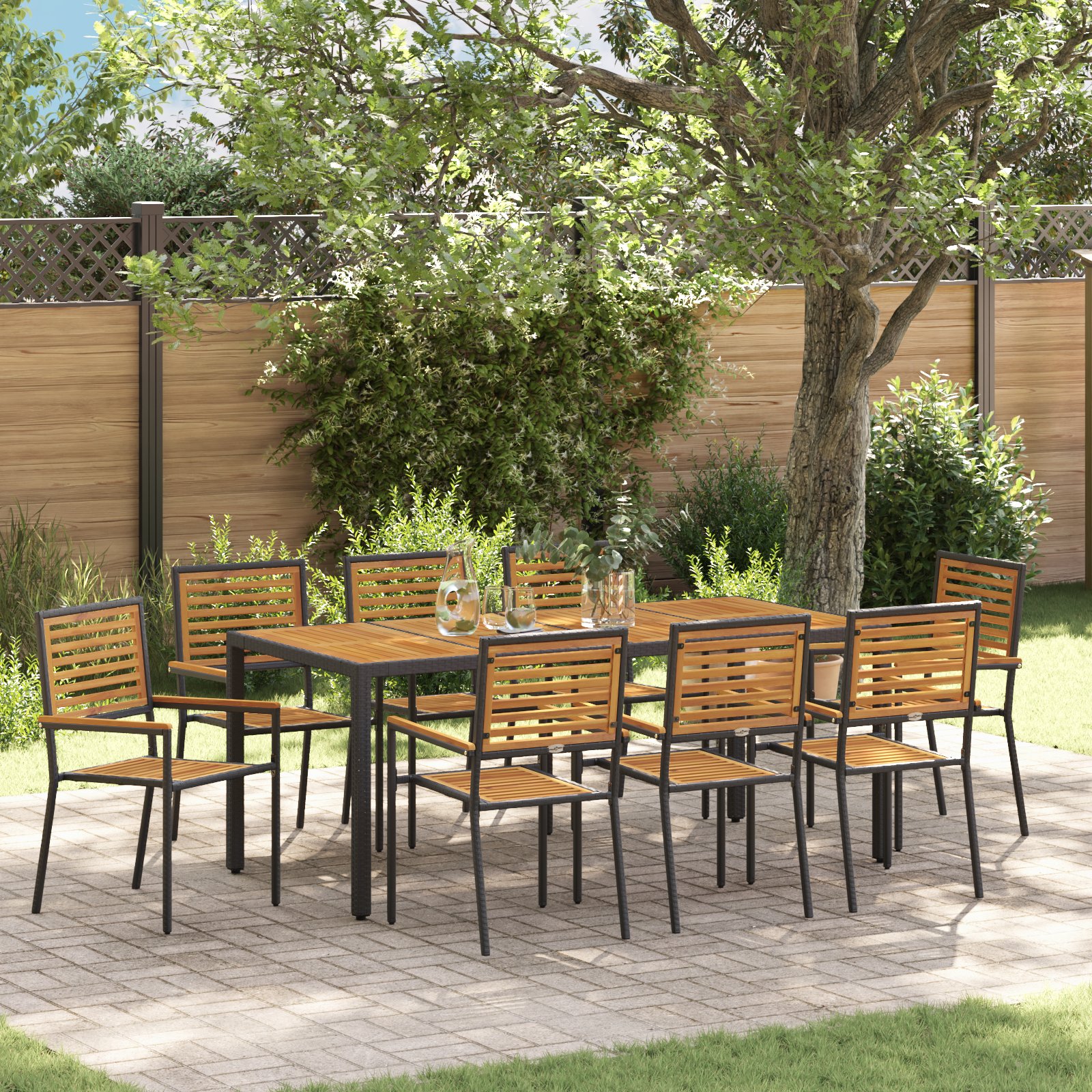 vidaXL záhradný jedálenský set 9 kusov čierny poly ratan akácia