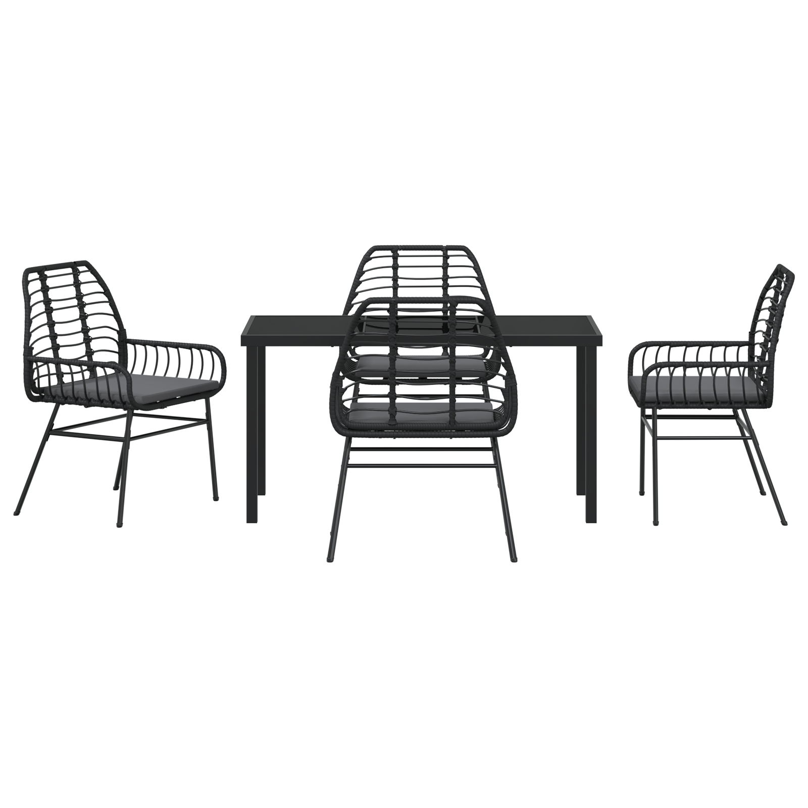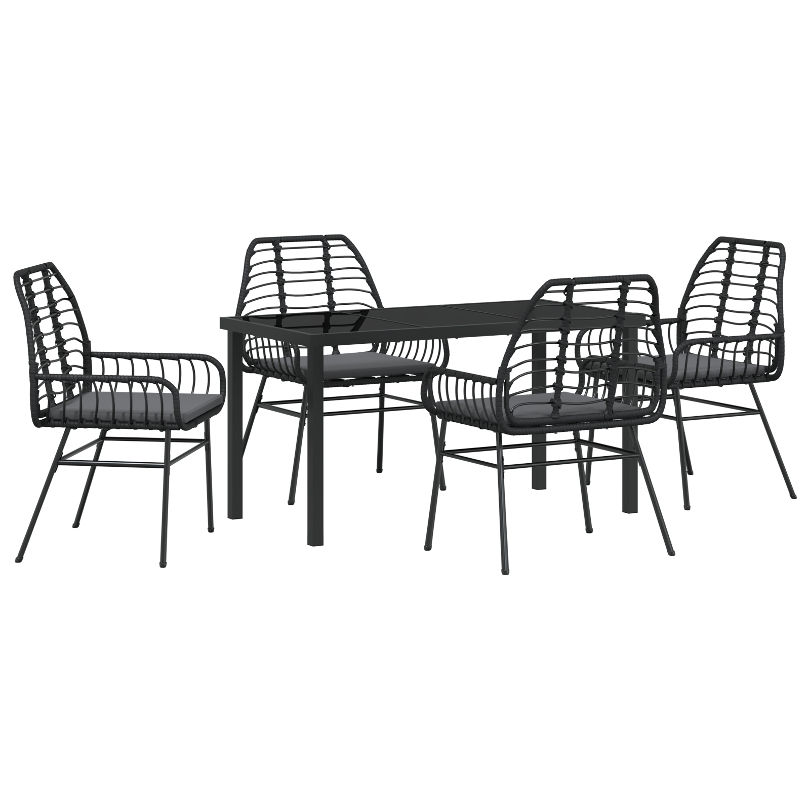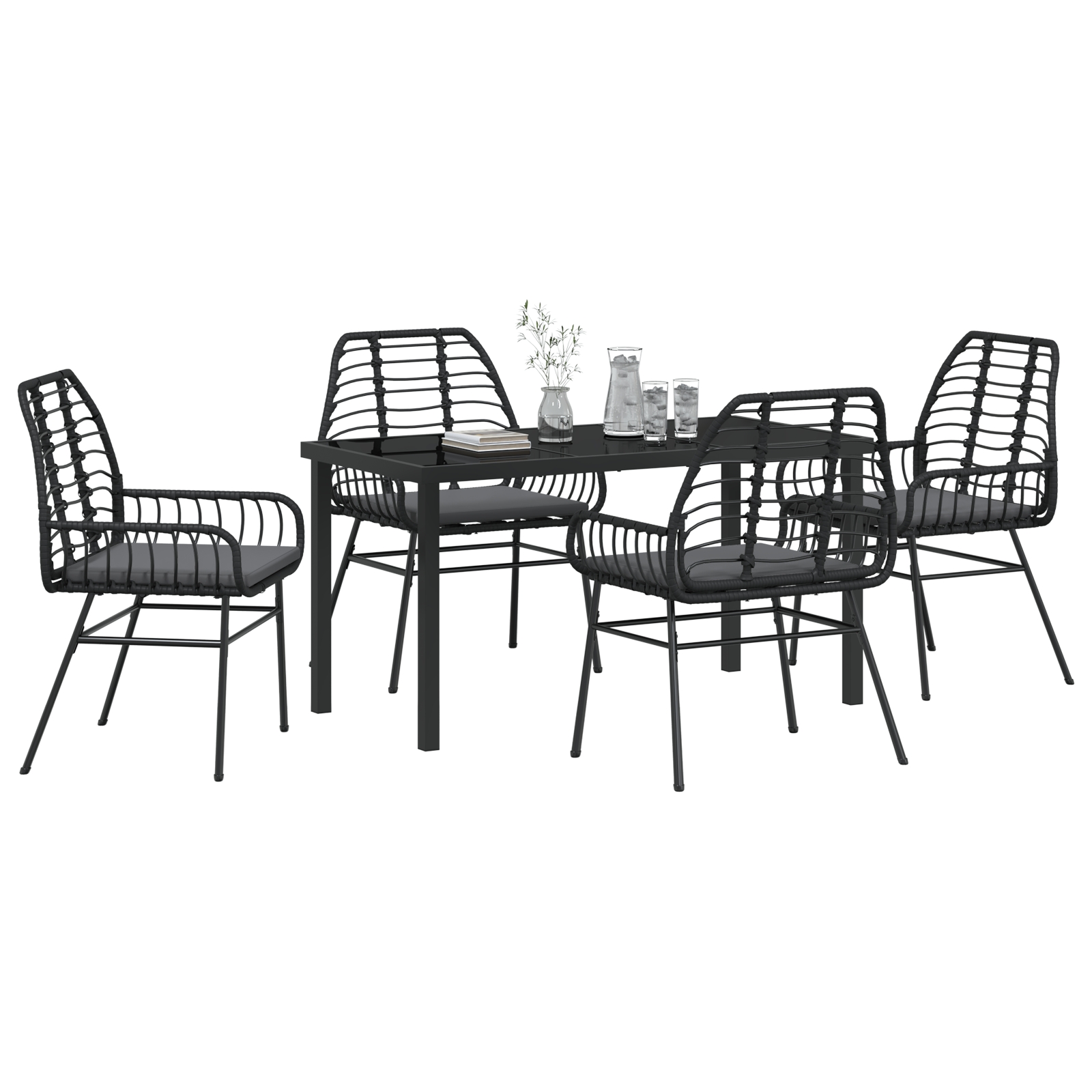 vidaXL Záhradný jedálenský set s 5 kusmi s vankúšmi čierny poly ratan