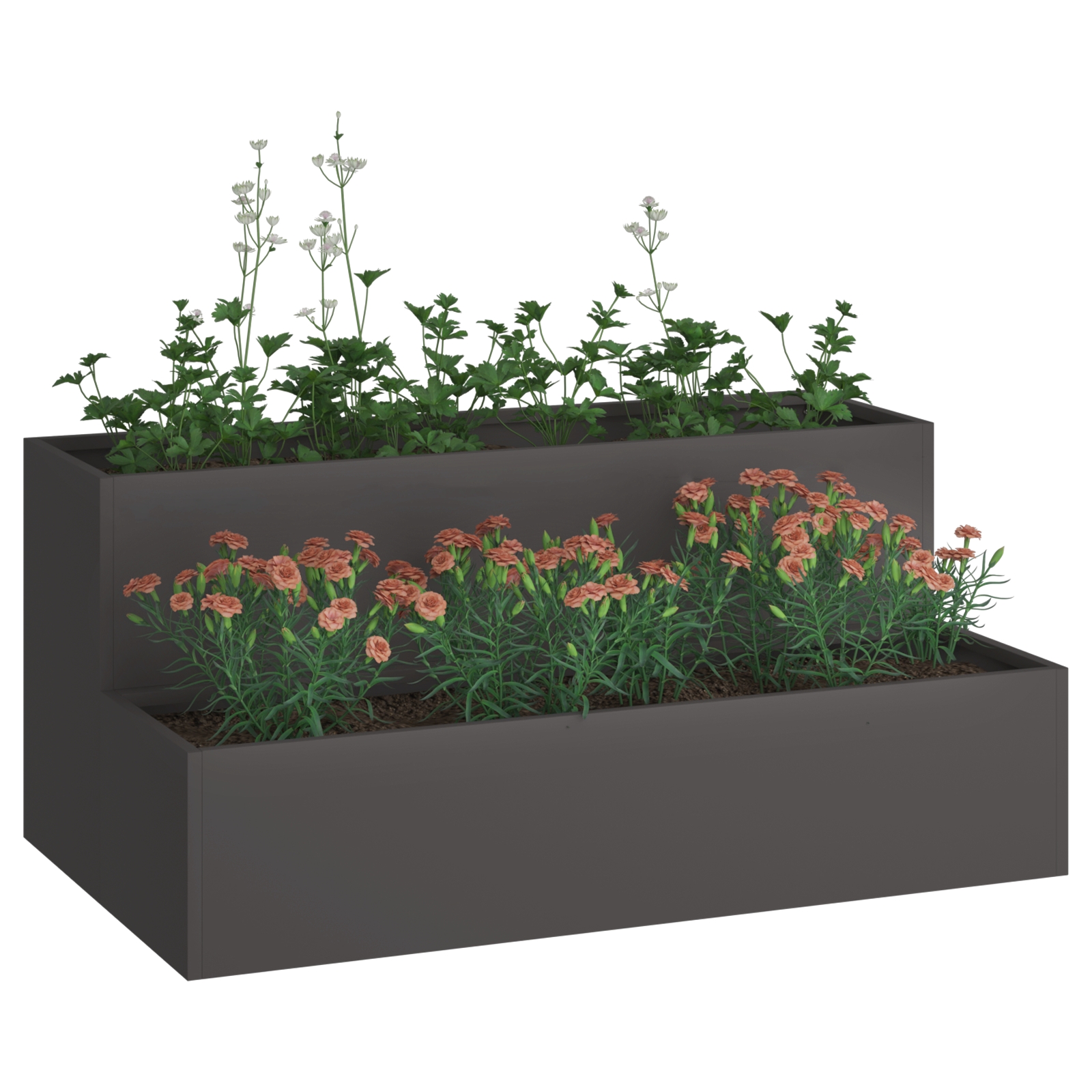 vidaXL Záhradný kvetináč na 2 podlažia 100x60x45 cm Čierna Oceľ