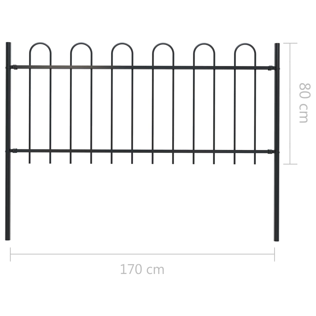 vidaXL Záhradný plot s oblúkovým zakončením, oceľ 1,7 m, čierny