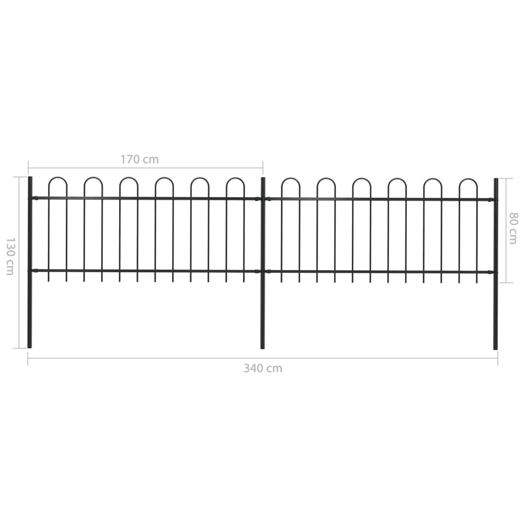 vidaXL Záhradný plot s oblúkovým zakončením, oceľ 3,4x0,8 m, čierny
