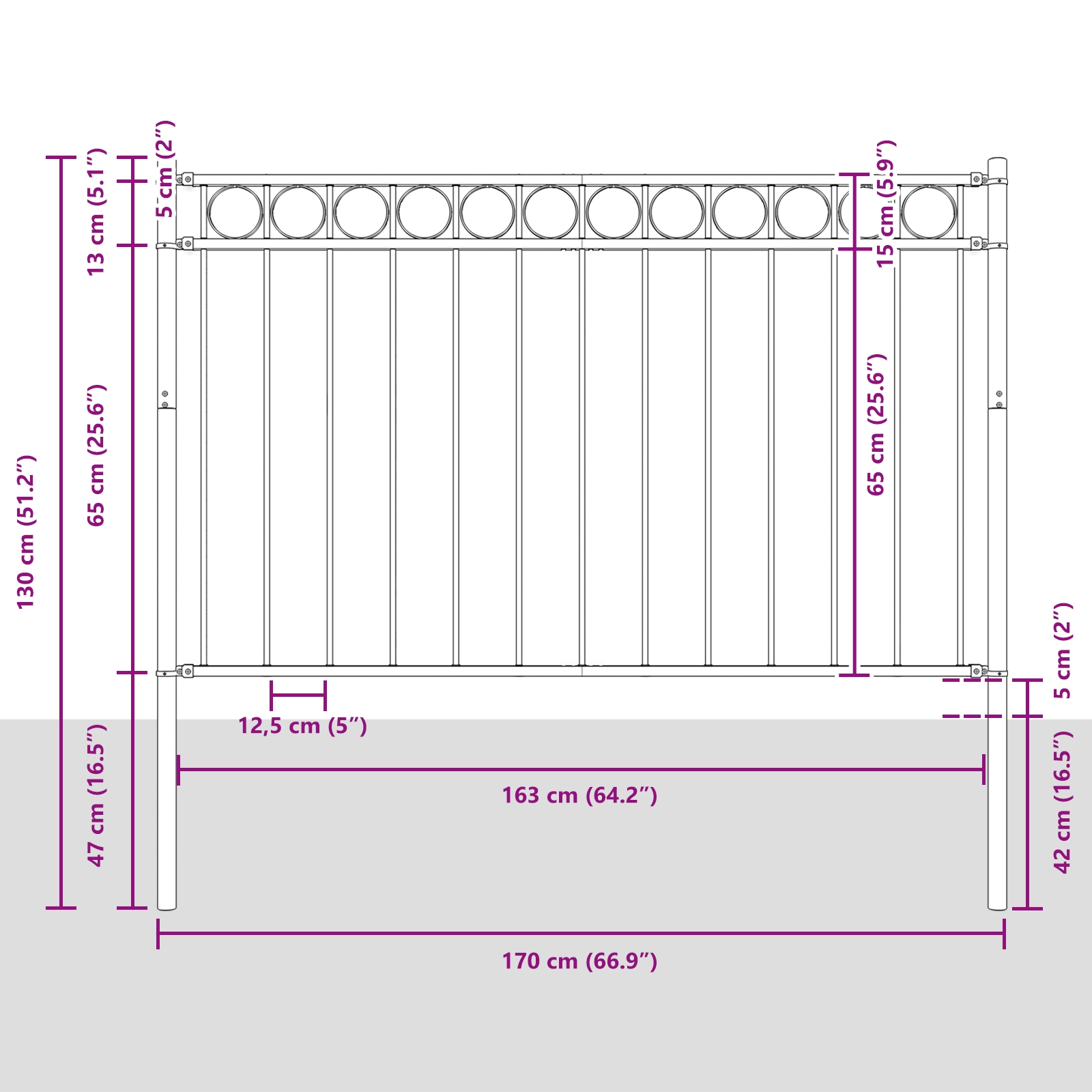 • Trvácna konštrukcia: Vyrobené z odolnej ocele, ktorá zvládne výzvy vonkajšieho prostredia a zachová si svoju silu a vzhľad. Môžeš sa na to spoľahnúť, že zostane pevné a vydrží aj pri rôznych poveternostných podmienkach.