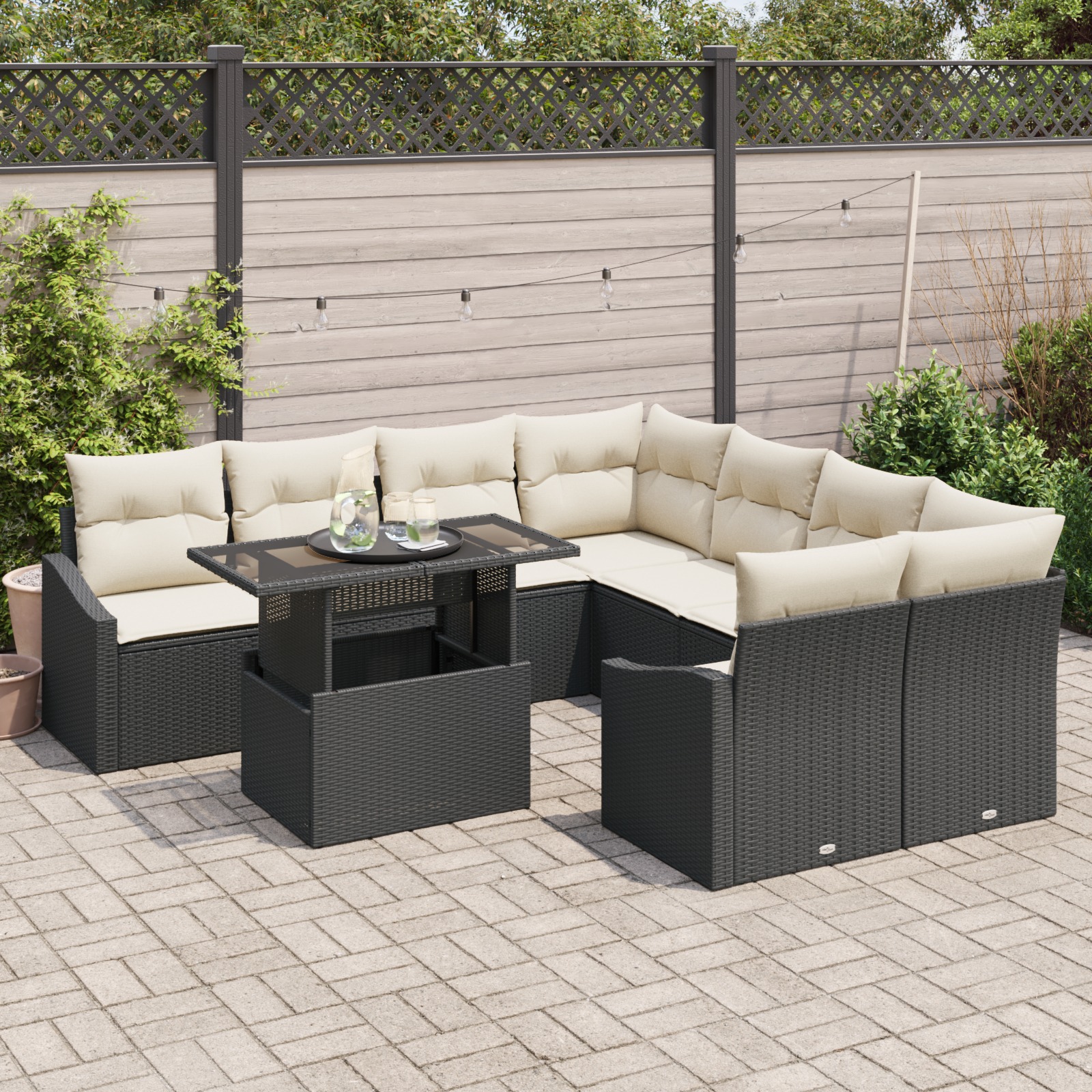 Tento 9-dielny záhradný pohovkový set skvele kombinuje moderný štýl a pohodlné vonkajšie posedenie, takže je ideálny na socializovanie alebo oddych v tvojej záhrade. Štýlový design a pohodlné vankúše spolu s odolným ratanom robia z tohto setu dokonalé miesto na relaxáciu s kamarátmi alebo rodinou.