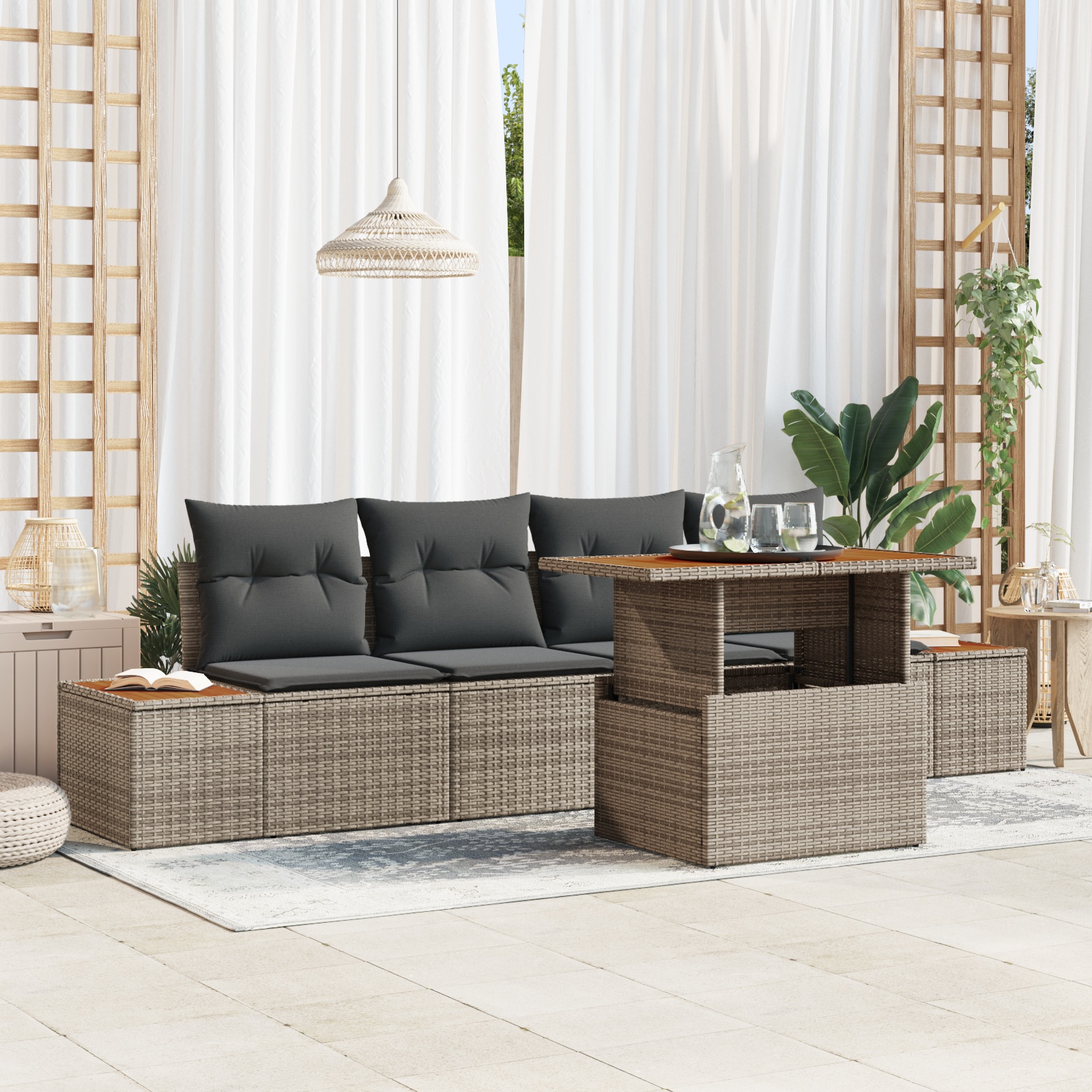 vidaXL Záhradný pohovkový set Set 5 kusov Sivý Ratan Záhradná pohovka