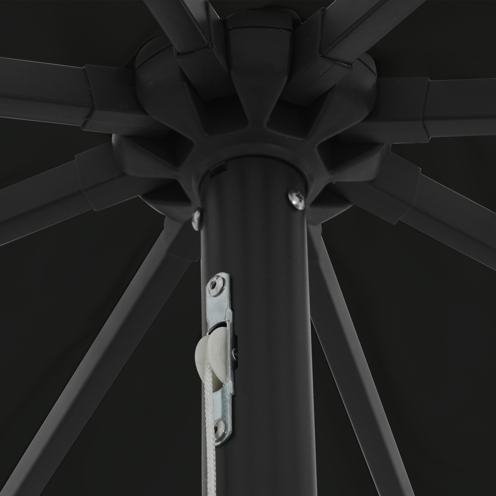 Tento veľký okrúhly slnečník sa týči do výšky 249 cm a poskytuje ti parádny tieň na vonkajších priestoroch. Čierny a moderný, je to perfektná voľba, ako si spríjemniť letné dni na slnku.