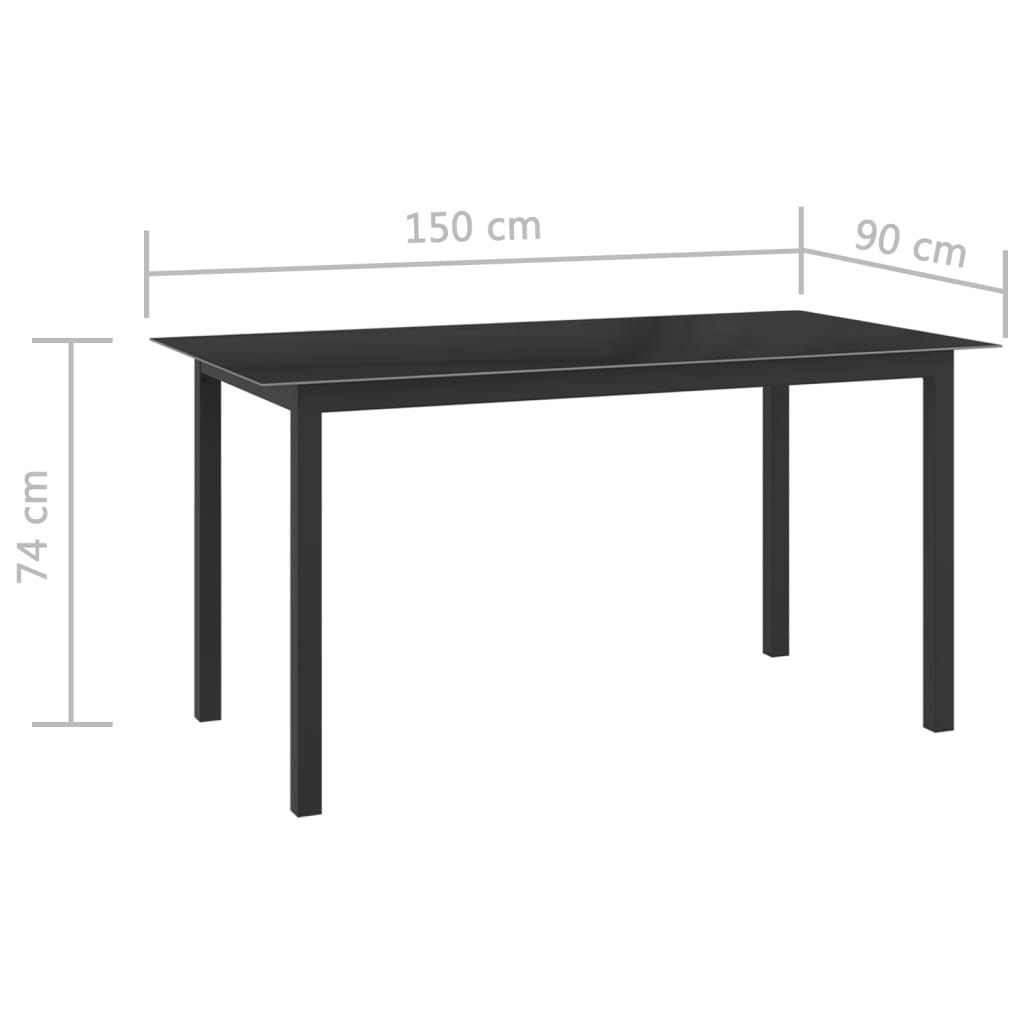 vidaXL Záhradný stôl, čierny 150x90x74 cm, hliník a sklo
