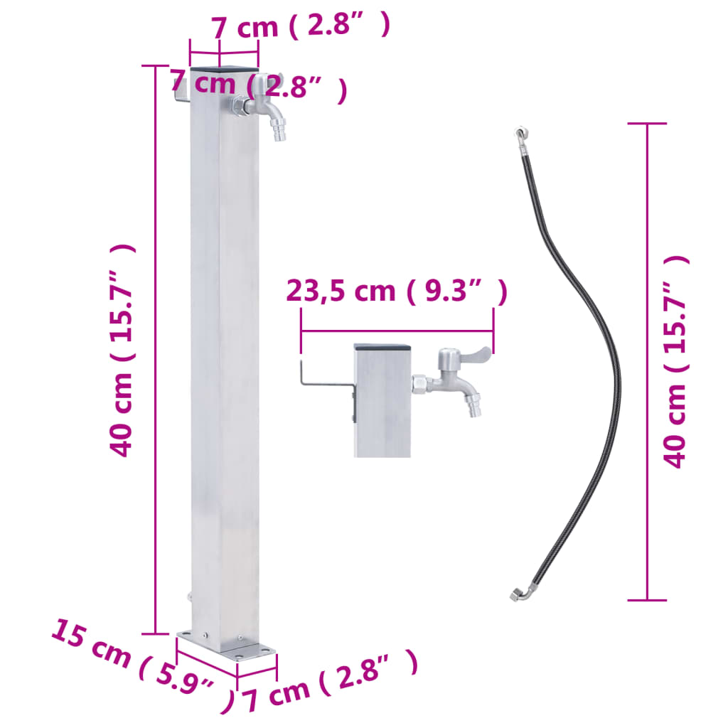 vidaXL Záhradný vodný stĺpik 40 cm nehrdzavejúca oceľ štvorcový
