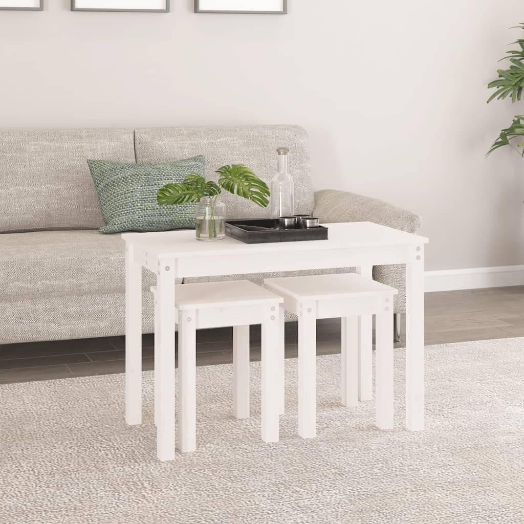 vidaXL Zasúvacie stolíky 3 ks biele borovicový masív