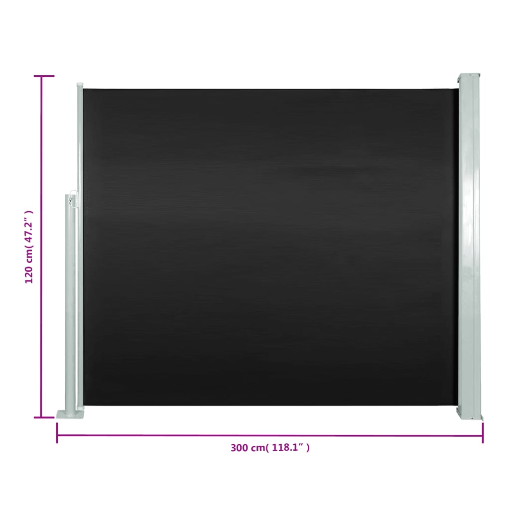 vidaXL Zaťahovacia bočná markíza 120 x 300 cm čierna