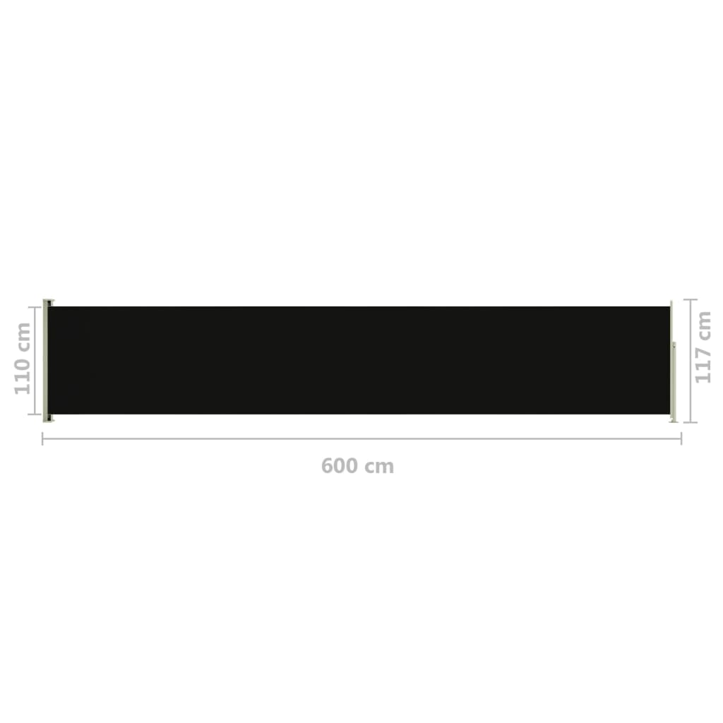 vidaXL Zaťahovacia bočná markíza na terasu 117x600 cm čierna