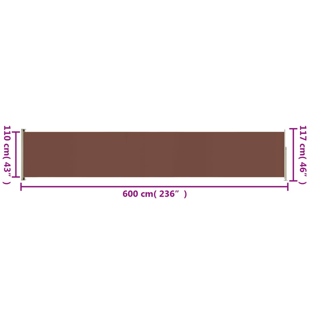 vidaXL Zaťahovacia bočná markíza na terasu 117×600 cm hnedá