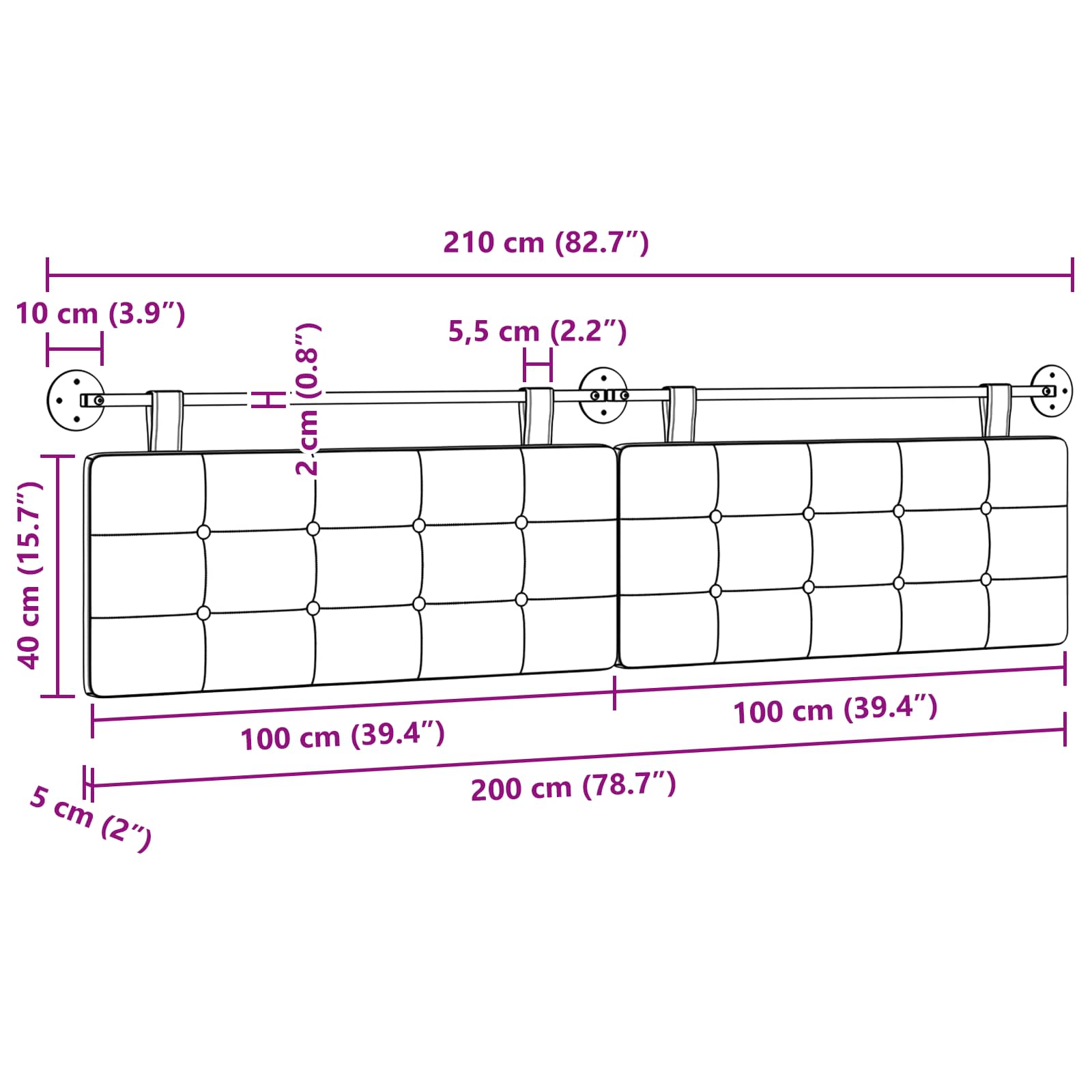 • Celkové rozmery: 210 x 55 x 5 cm (Š x H x V)