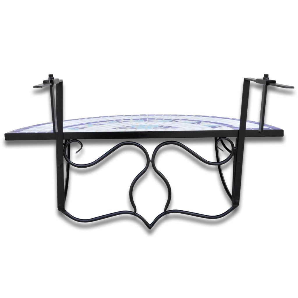 Železný rám stolíku dodáva potrebnú pevnosť a keramická doska v tvare polkruhu sa dá jednoducho očistiť. Stolík na balkón sa dá namontovať na akúkoľvek terasu či balkón so zábradlím so šírkou do 18 cm. Dá sa jednoducho sklopiť, keď sa nepoužíva, aby nezaberal veľa miesta. Upozorňujeme, že nie je vhodné výrobok nechávať vonku v chladnom počasí.