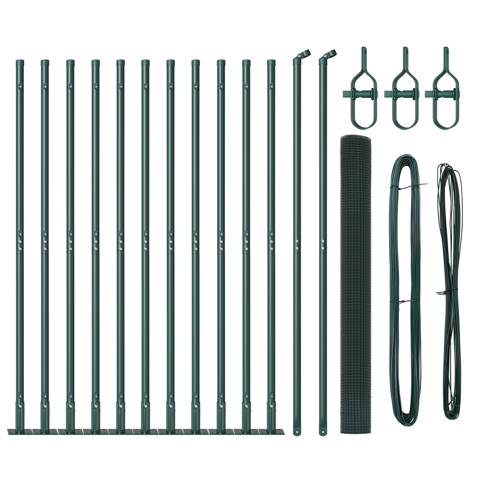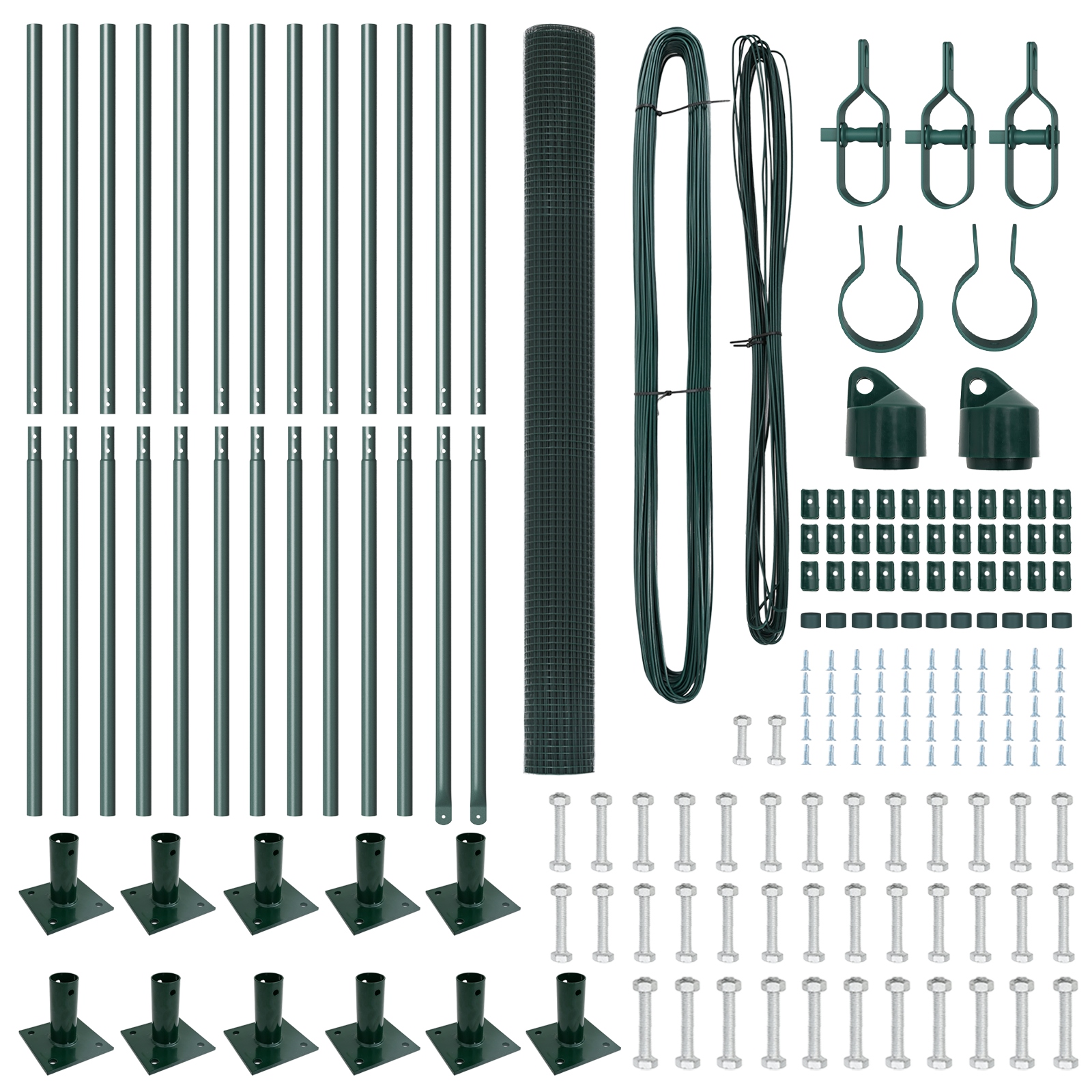 vidaXL Zelený zváraný drôtený plot s 13 stĺpmi s rozšírenou základňou 1.4×25 m z ocele