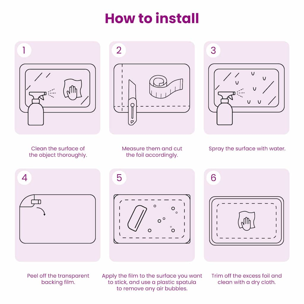 • Jednoduchá aplikácia: Vďaka samolepiacemu povrchu sa inštalácia pekne zjednoduší. Fólia sa bez problémov nalepí na hladké plochy, bez vzduchových bublín a vrások a ponúka profesionálny vzhľad.