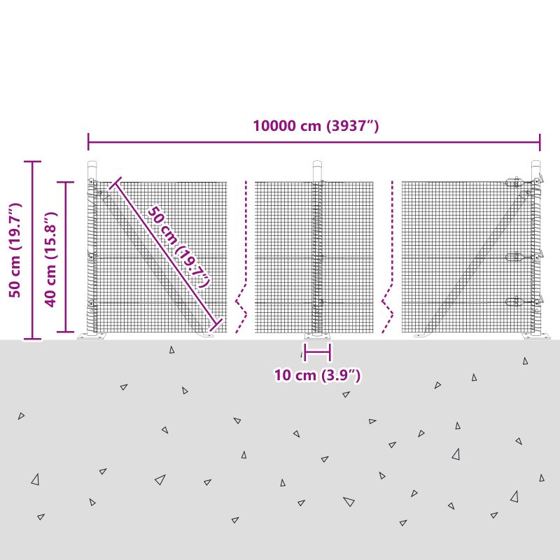 vidaXL Zváraná drôtená ohrada s 13 výstužnými stĺpmi 0.4x100 m pozinkovaná oceľ