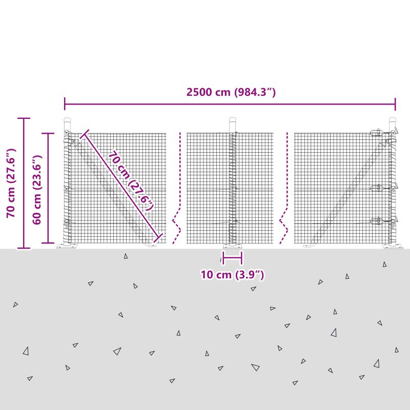 vidaXL Zváraná drôtová aleja so 13 stĺpikmi so drážkou Šedá 0.6x25 m Oceľ