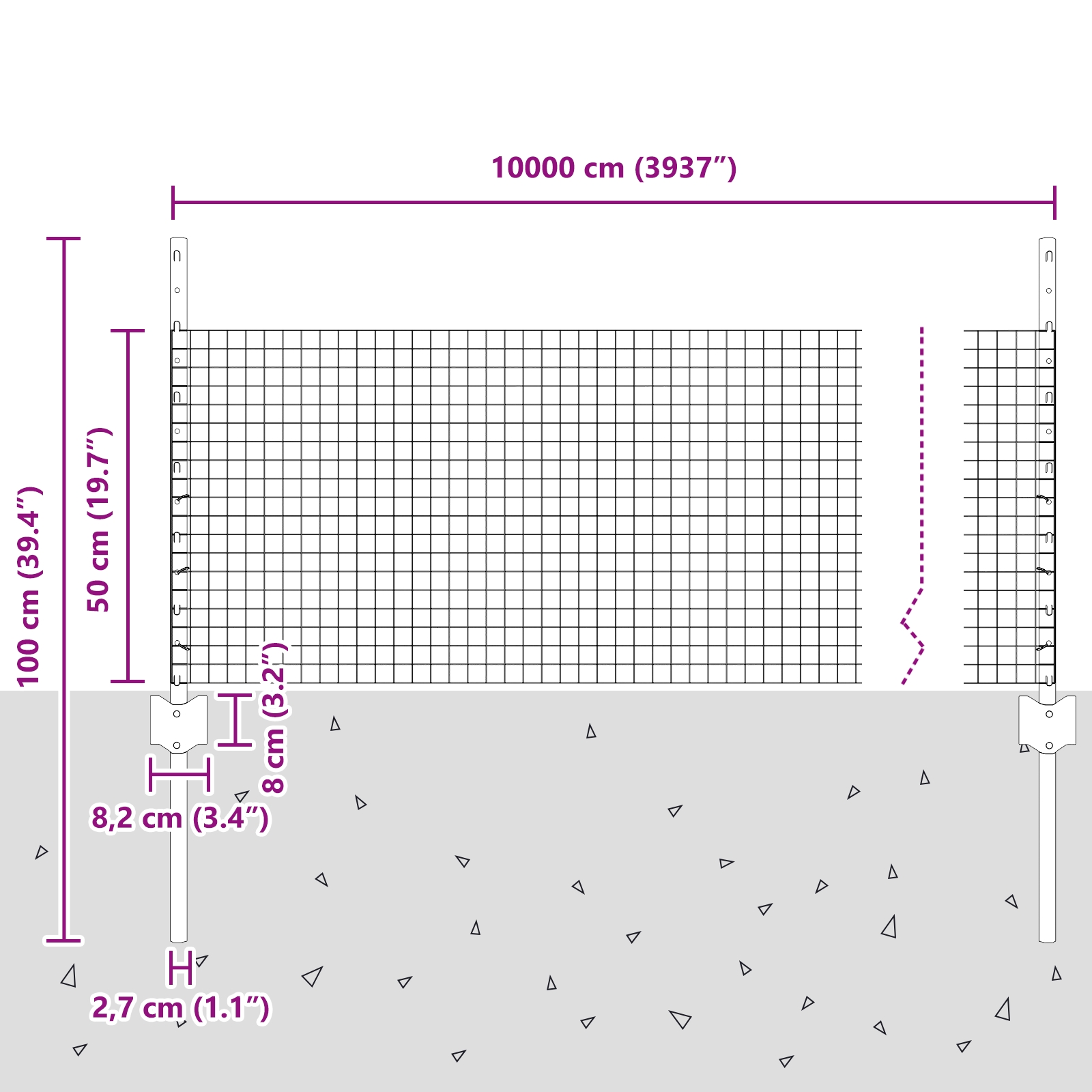 vidaXL zvárané drôtené oplotenie s 44 U stĺpmi Sivé 0.5x100 m Oceľ