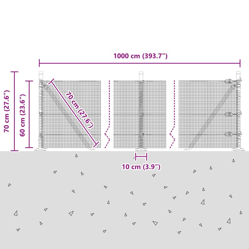 vidaXL zváraný drátový plot so 7 prírubovými stĺpmi Sivý 0.6×10 m Oceľ