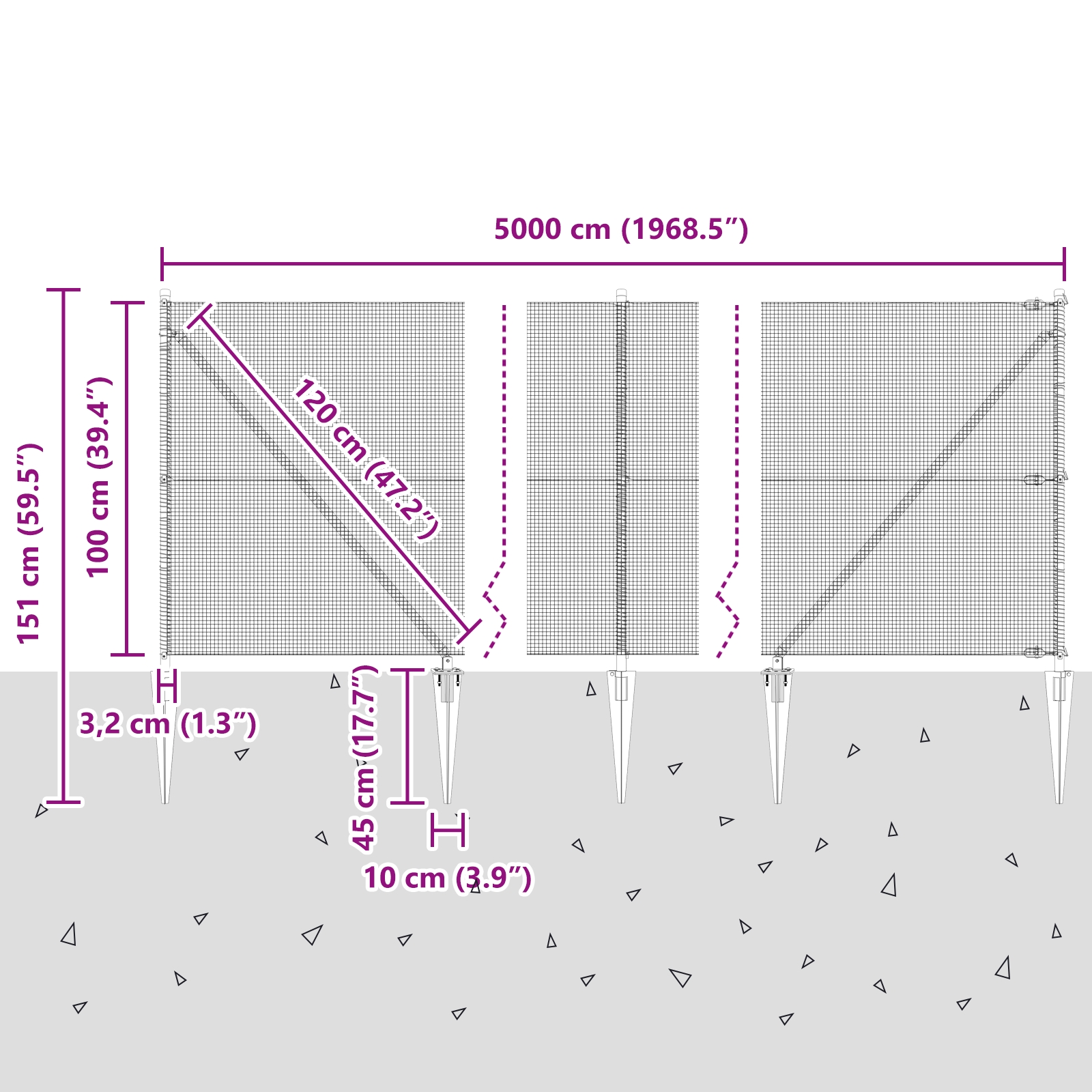• Delivery Contains: Mesh fence, wire ties, spike anchors