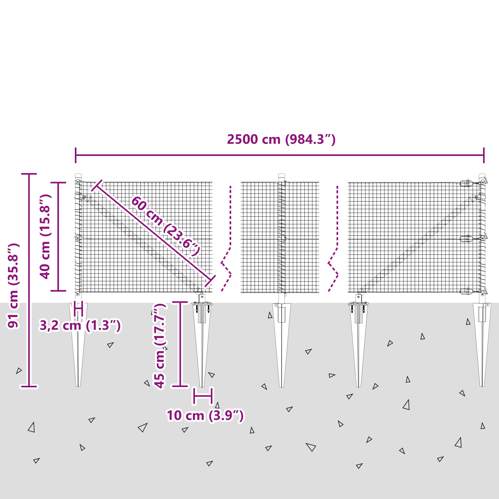 • Delivery Contains: Wire mesh fencing roll, Support posts, Spike anchors, Fixing clips