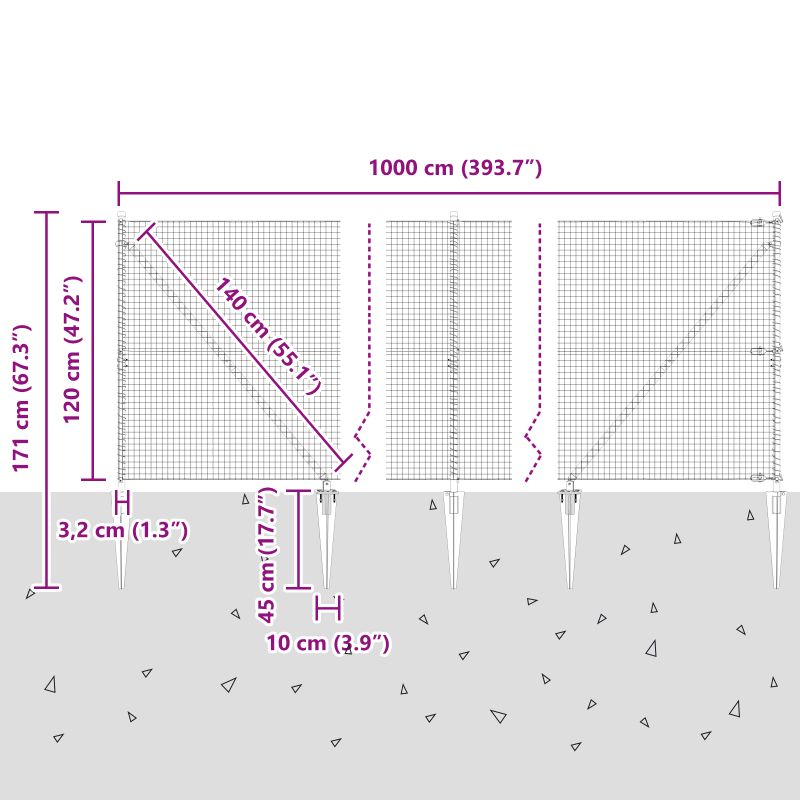 vidaXL Zváraný drôtový plot s 7 kotevnými kolíkmi 1,2 x 10 m z pozinkovanej ocele