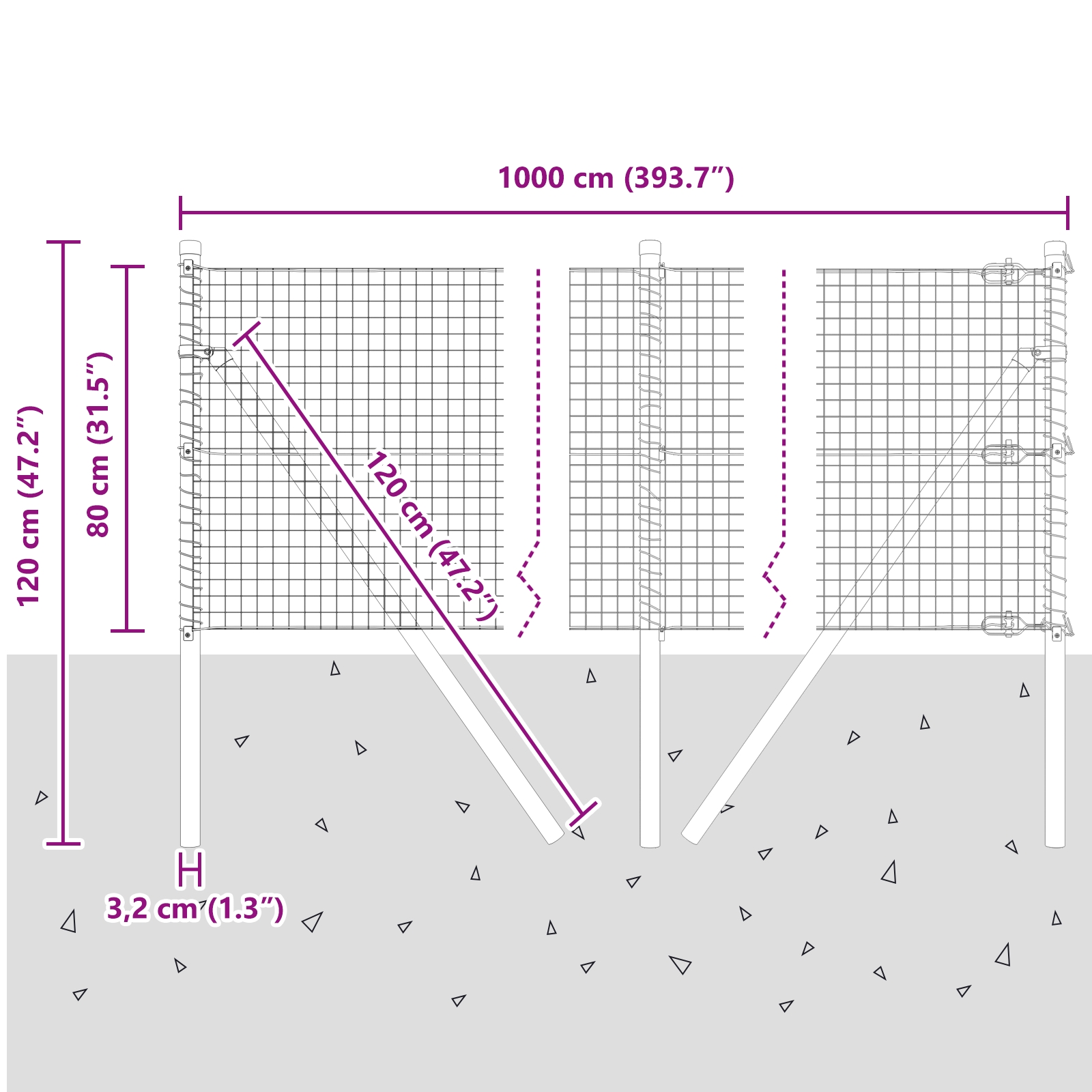 vidaXL zváraný drôtový plot s 7 stĺpmi zelený 0,8x10 m oceľ