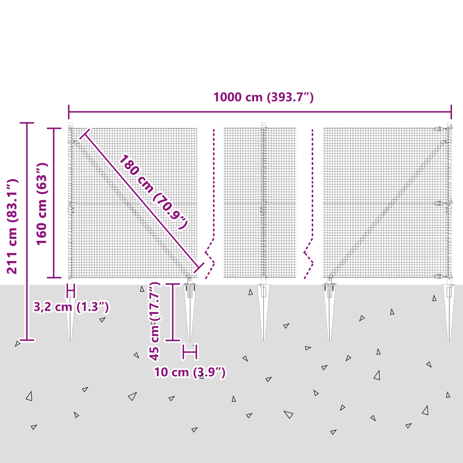 vidaXL Zváraný drôtový plot so 7 špicatými stĺpmi 1.6×10 m Pozinkovaná oceľ