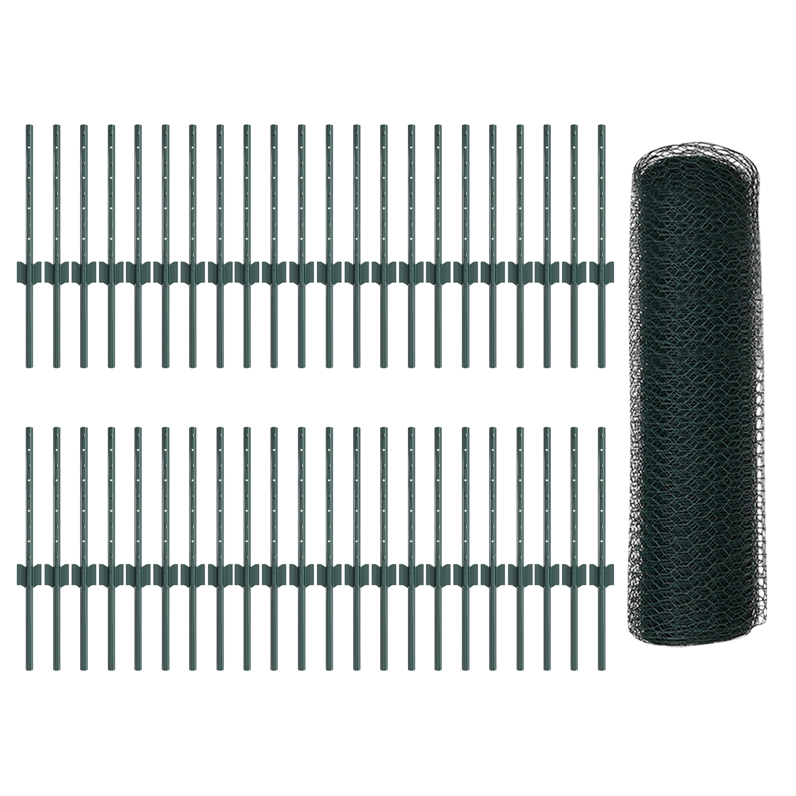 Záhradné stĺpiky vidaXL 11 ks U-Channel Zelená 40 cm Ocel, Hexagónový plot vidaXL Zelený 0,4x100 m Oceľ
