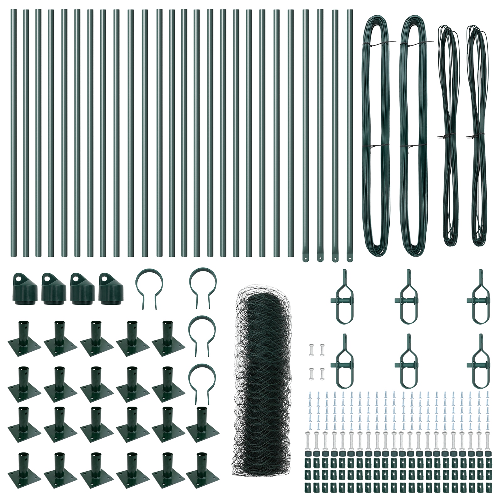 Zelené hexagonálne oplotenie vidaXL 1x50 m z ocele, Oplotenie vidaXL s základnými doskami 13 ks Ø32 mm 110 cm z pozinkovanej ocele